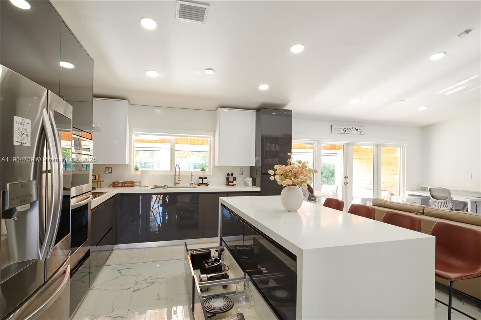 Completely remodeled single-family corner-lot home in highly desirable area at Kendall. This stunning 4-bedroom, 2.5-bath residence sits on an 8,000+ sq. ft. + In Laws Quarter surrounded by mature trees for total privacy. Features include a new flat roof (2 years), new central A/C. remodeled kitchen and bathrooms, custom closets, ceramic tile floors throughout, & electric blackout curtains in all rooms. Enjoy a remodeled pool with travertine marble throughout the entire patio & a covered terrace with Zipper outdoor curtains-perfect for entertaining year-round. The property also offers a nearly 9-foot-high double gate with ample space for RV, trailer, or boat parking, plus a built-in library area. Move-in ready, elegant, & located near top-rated schools, highways, shopping and restaurants.