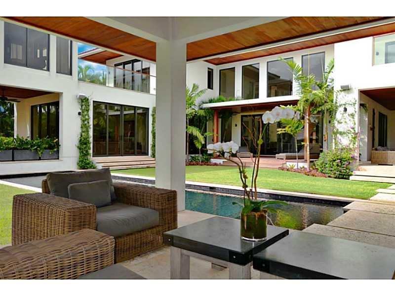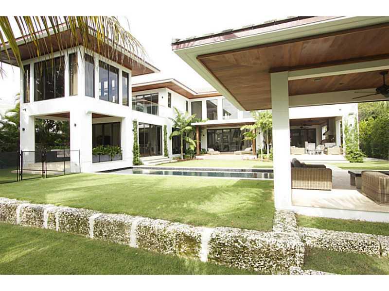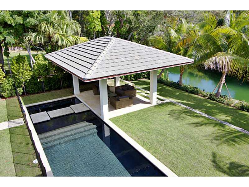 This custom-built waterfront masterpiece in Coral Gables was designed by architect Cesar Molina and features many designer finishes. It includes a gourmet kitchen with high-end appliances, a stunning living and dining room with retractable doors leading t o the elegant back yard, and a master suite with spa-like master bath and walk-in closet with built-ins. The back yard has four covered patios, a summer kitchen, a heated pool with spa, and a boat dock with a new boatlift.