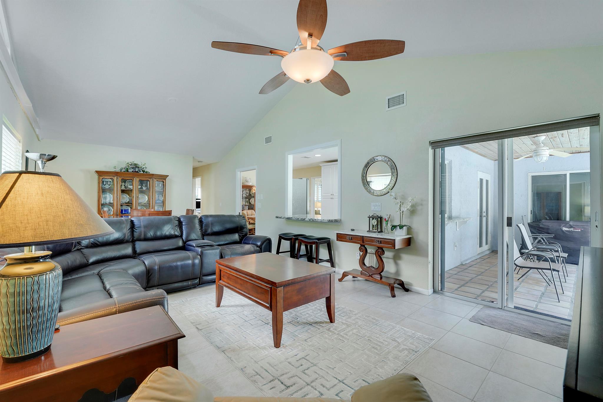 Beautiful home in Garden Woods offering unobstructed canal views. The kitchen has granite countertop and custom cabinets. Features include a new master bath vanity, Whirlpool washer and dryer (2015), water filtration system, and newer A/C units (2024 & 2017). Enjoy an expansive composite deck, fiberglass pool, circular driveway, metal roof (2005), impact windows and doors, and Hurricane Armor screen.. A maintained home built for comfort and peace of mind. Don't forget there's NO HOA just minutes from beaches, dining, shopping, I-95 & the turnpike. Location, Location!