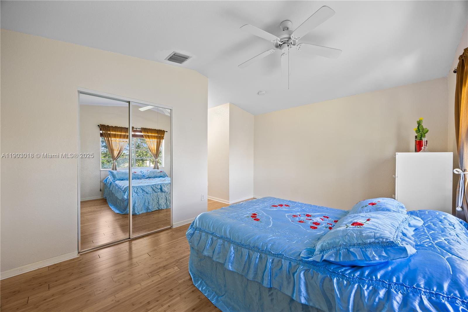 32K Price Reduction. Seller says sell!! Experience modern elegance in this stunning lakeview home in Sunset Lakes! This one-of-a-kind townhouse is the sole listing with a west-facing lake view, providing exceptional sunset scenery each evening. Featuring a rare 3 bed/3 bath with one bedroom and full bathrm on the first flr. Also has luxury tile and bamboo flooring throughout for lasting durability and style. The large eat-in kitchen boasts stainless steel appliances (installed 2021), and the A/C was replaced in 2021. Enjoy resort-style amenities including a sparkling pool, state-of-the-art gym, tennis and basketball courts, cable, lawn care, and exterior paint. Home offers full hurricane protection. Conveniently located near A+ schools, and I-75, this home is a rare gem in a highly sought-after community!