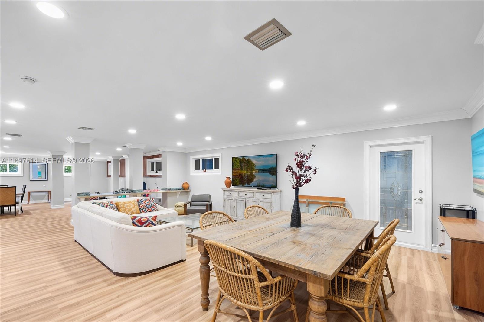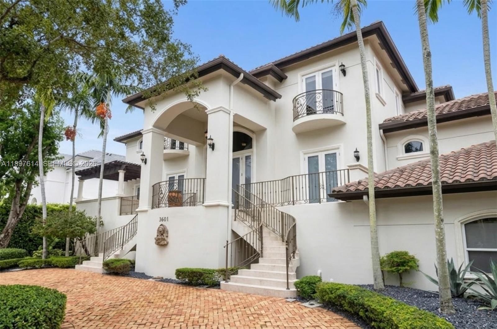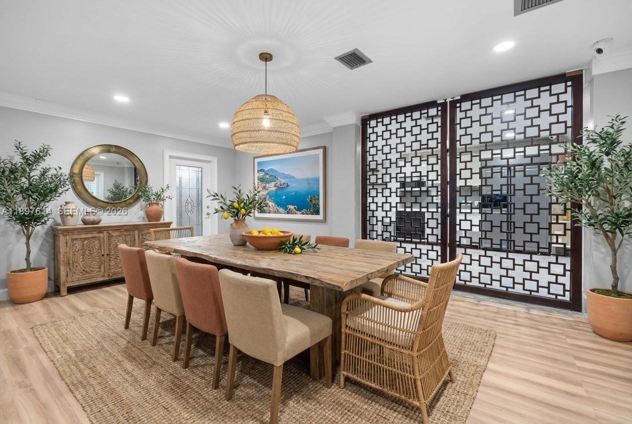 Situated within 24/7 guard-gated Entrada Estates, this Grove estate balances scale, function, and flexibility. Total area around 14,000 SF of A/C living space, including a rare downstairs level with second kitchen, lounge, gym/play areas, office, family room, and 3-car garage. All outlets sit above flood lines with a lift/pump station; primary insurable living starts on the 2nd & 3rd floors. Recent upgrades include new privacy landscaping, pool area enhancements, and new AC units. Features include elevator, 26 cameras, mosquito misting system, 8' solid-core doors, marble & Brazilian cherry floors, and a patio overlooking free-form pool with waterfall, outdoor shower, and cabana bath. Prime location near downtown Coconut Grove, marinas, tennis court, and daily dockage within the community.