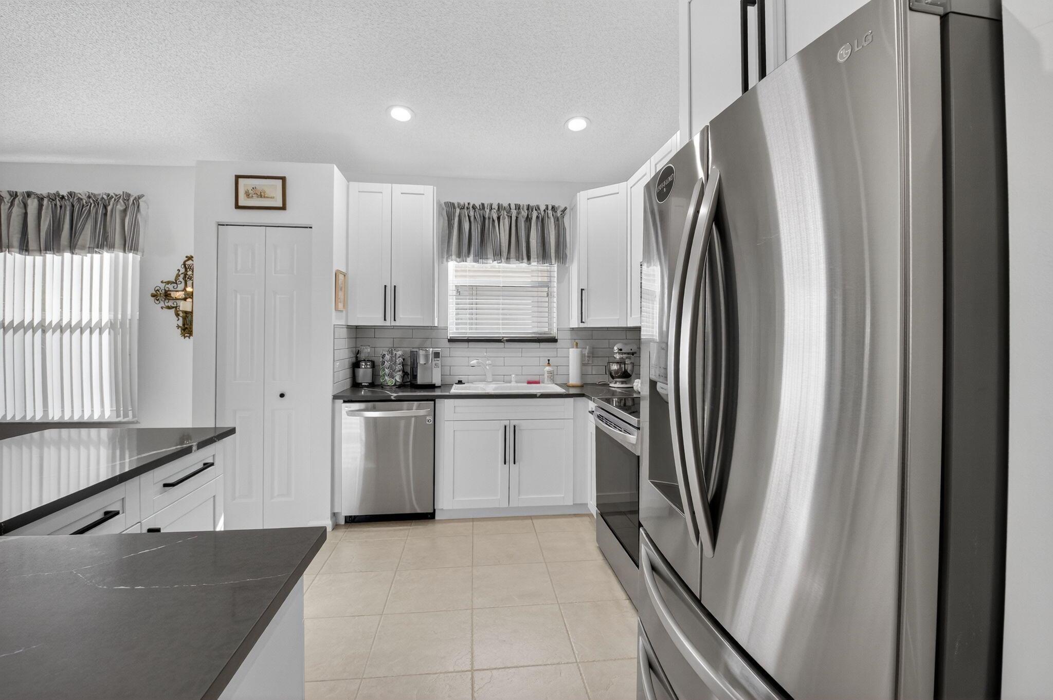 Welcome to this impeccably maintained home located in the desirable Estates II section of The Grove. From the moment you enter, you'll be impressed by the spacious, light-filled design featuring vaulted ceilings, recessed LED lighting throughout the living areas, and elegant tile flooring throughout the main living areas. The home's split floor plan provides privacy and functionality, with the den easily convertible into a third bedroom. The fully renovated open kitchen features quartz countertops, L-shaped island, stainless-steel appliances (only 2 years old), pantry, and abundant cabinetry with soft-close drawers. Whether you love to cook or entertain, this kitchen is both stylish and practical.