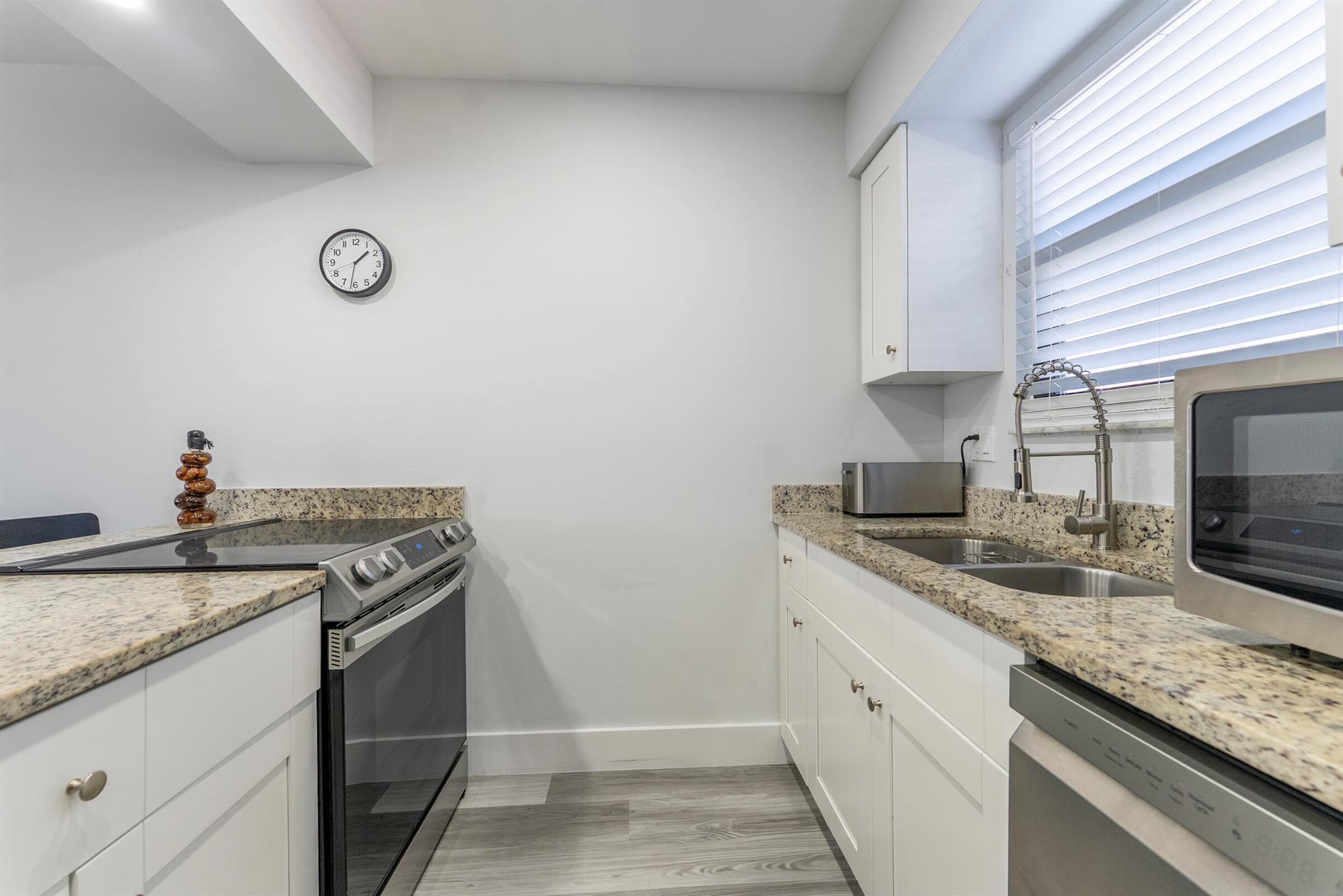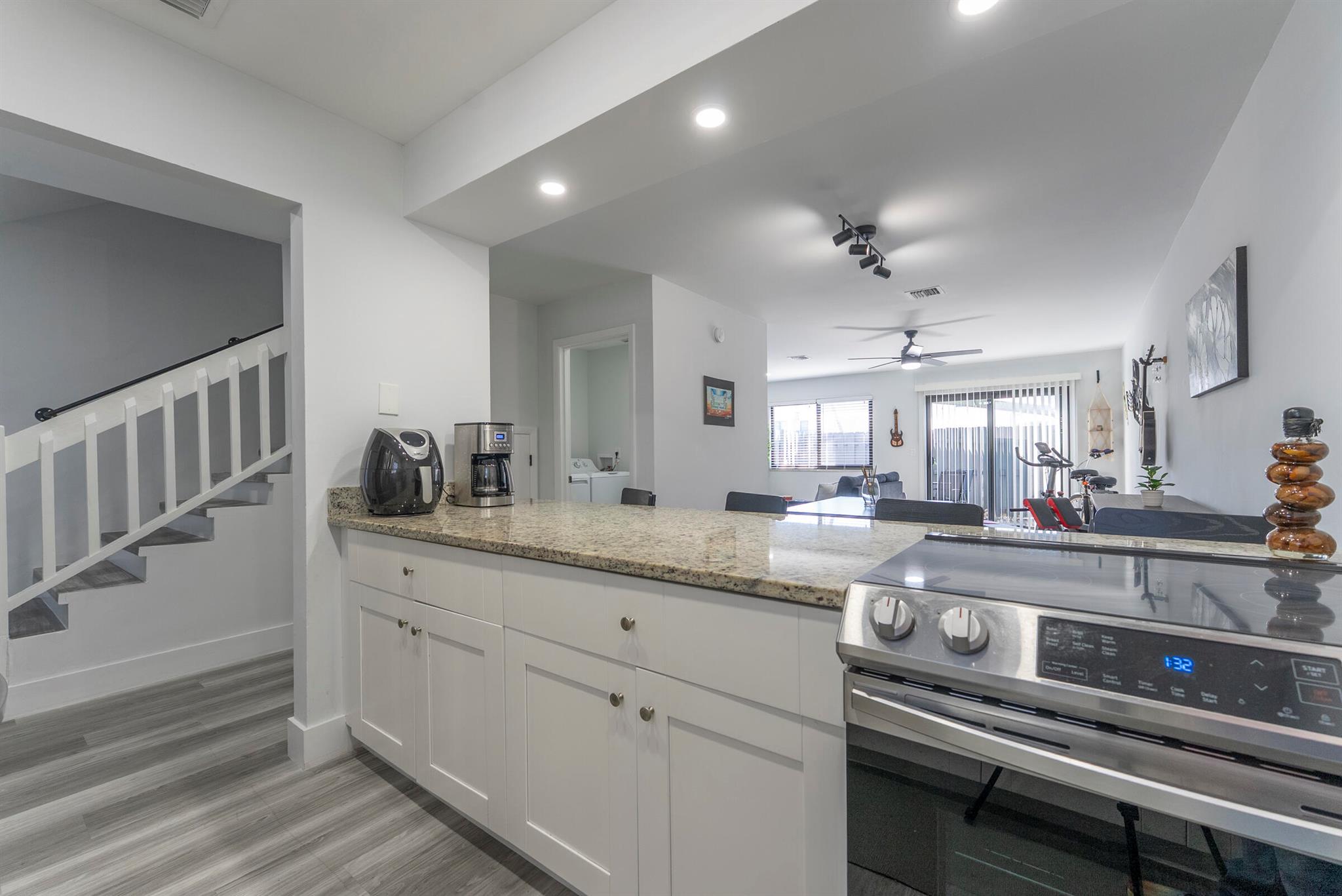 Welcome to this charming 2 bed/2.5 bath corner townhouse in the heart of Greenacres! This Beautifully renovated home features a modern open kitchen concept, with stainless steel appliances and stunning granite countertops. All bathrooms have been tastefully renovated, and the laminate flooring really compliments the space. The home allows for plenty of natural lighting, and recessed lights have been installed throughout. Brand new Impact windows installed in 2024 including all appliances. The private fenced patio is perfect for relaxing or grilling with family and friends. This lovely community offers a clubhouse, fitness center, pool, jacuzzi, basketball, tennis, and soccer court. The HOA covers exterior maintenance including Lawn care, building insurance, roof which was replaced in