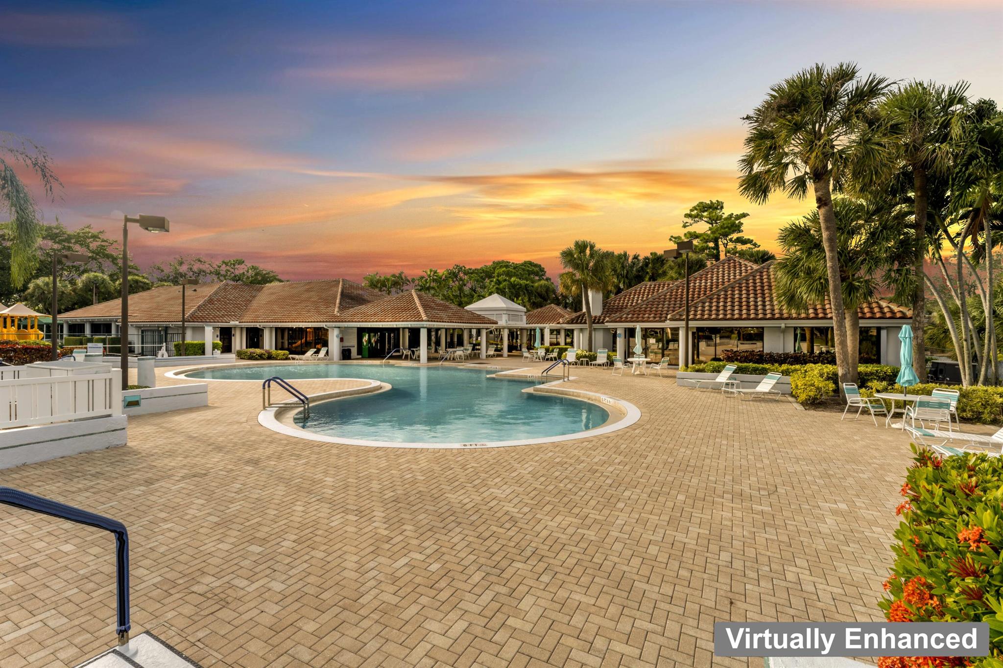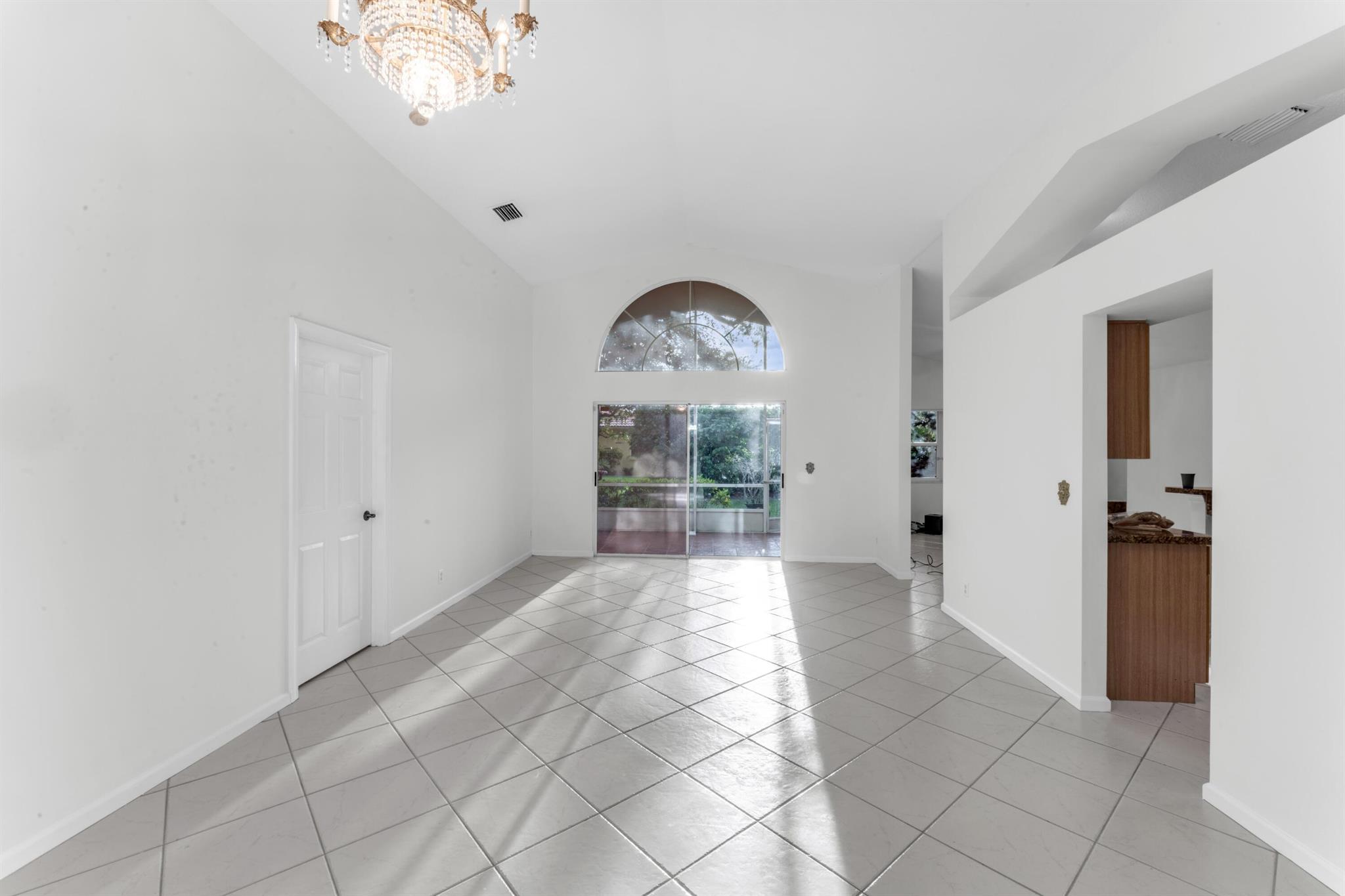 Quick closing! 3/2/2 Freshly painted home in desirable River Bridge. Home boasts plenty of natural light, tile on the diagonal, split floor plan, formal dining/living area, updated kitchen open to family room & indoor laundry w/ pocket door. Kitchen has w/granite counters, LG SS appliances, pantry & bar. Interior also offers plantation shutters, sliders from living & primary bedroom to screened patio. Stamped concrete driveway leads to screened front porch and the double door entry. Exterior is pre-cast solid concrete construction w/accordion shutters, gutters, electric fountain & 50 amp 220 plug for EV. Southpointe offers a satellite pool in addition to the River Bridge amenities(see supplement). Close to multiple dining options, groceries & Wellington mall. Lawncare & Cable included.