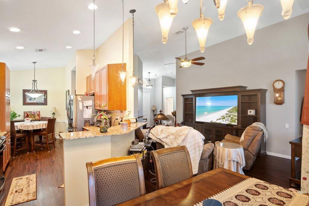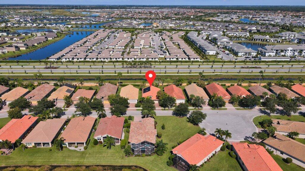 Stunning 2-bedroom + den, 2-bath home in the 55+ gated community of Vitalia at Tradition!Open split floor plan with vaulted ceilings, luxury laminate flooring, and impact-rated windows and doors. Enjoy huge energy savings with a fully paid-off solar panel system and newer A/C (2022).The gourmet kitchen features granite countertops, stainless steel appliances, gas range, and breakfast bar. The primary suite offers dual walk-in closets, double vanities, soaking tub, and separate shower.Relax on the screened lanai and paver patio with room for a future pool. Vitalia amenities include a clubhouse, resort-style pool & spa, fitness center, tennis, pickleball, and more -- all in a secure, guard-gated community.