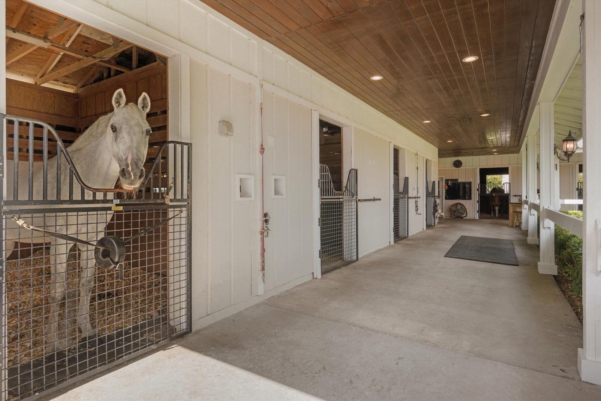 Experience refined equestrian living on this exquisite Wellington estate. Set on a tranquil corner lot with breathtaking sunsets, the property offers 11 stalls (with room to expand), 2 wash racks, a newly upgraded GGT arena, and 8 lush paddocks. The elegant barn features tongue-and-groove ceilings, superior lighting, and a professional layout. The fully renovated 4BR/2BA main home and 2BR/1BA cottage shine with Carrara marble, gold accents, and designer finishes throughout. All structures boast new metal roofs. Bordering the Preserve with dual-gated access, this private, turn-key property blends sophistication and serenitya"an exceptional Wellington gem.