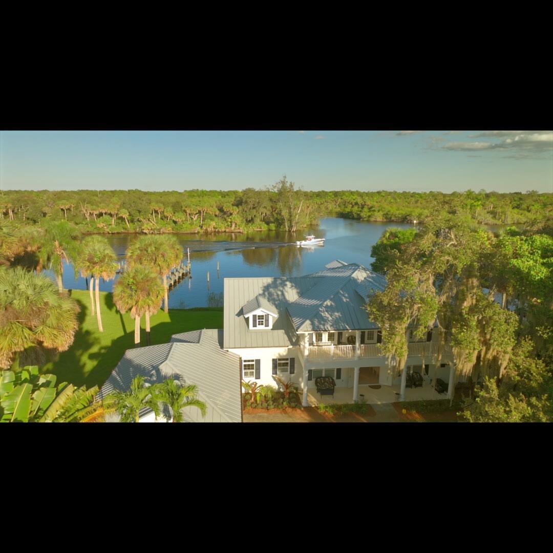Welcome to Imagination Plantation, a 5-bedroom, 4-bath waterfront estate on 4+ acres in Palm City -- including a 3+ acre vacant buildable lot fronting the main residence. Built in 2006 and thoughtfully updated with a 2022 roof, full impact glass, and fresh exterior paint, the home offers nearly 4,000 sqft of open living space, plus an elevator. The interior flows seamlessly to a screened-in pool and covered patio, while a circular drive and 3-car garage enhance convenience.