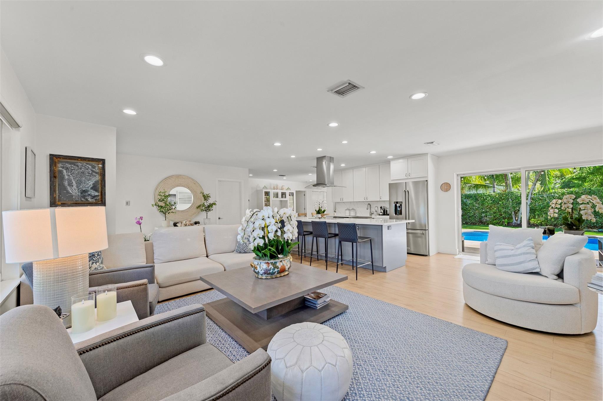 This exquisite 4-bedroom, 3-bath pool home w/2 car Garage has been completely reimagined with high-end finishes & modern sophistication. Nestled in one of Fort Lauderdale’s most coveted neighborhoods, the home effortlessly blends contemporary design with the warmth of relaxed coastal living. An open, sun-filled floor plan creates a seamless flow for both everyday living & stylish entertaining. The chef’s kitchen, elegant living spaces, and thoughtfully designed interiors reflect comfort and refinement at every turn. Step outside to your private tropical oasis-featuring a covered lanai, sparkling saltwater pool, travertine pavers, & a fully turfed backyard designed for year-round enjoyment and effortless maintenance. Every detail has been beautifully updated-inside and out.