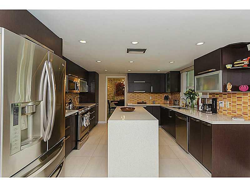 Beautifully and completely remodeled home. Marble, wood and tile throughout this well designed family home. New kitchen opens to spacious family room, overlooking sparkling solar heated pool and patio. Formal living & dining room. 3 bedrooms upstairs incl uding the master and 1 bedroom/1 bathroom/office downstairs. Impact windows throughout . A generator for the entire house. All this and more on a quiet tree-lined street.