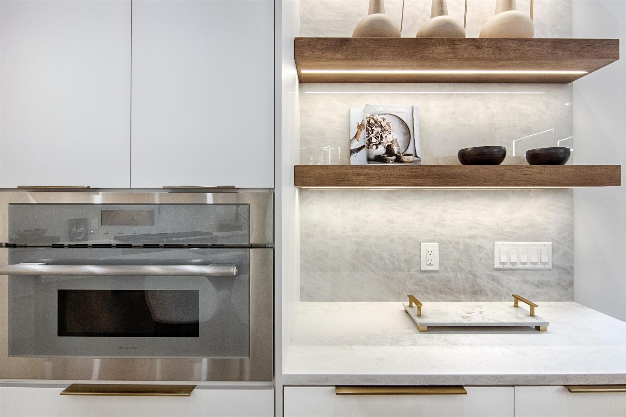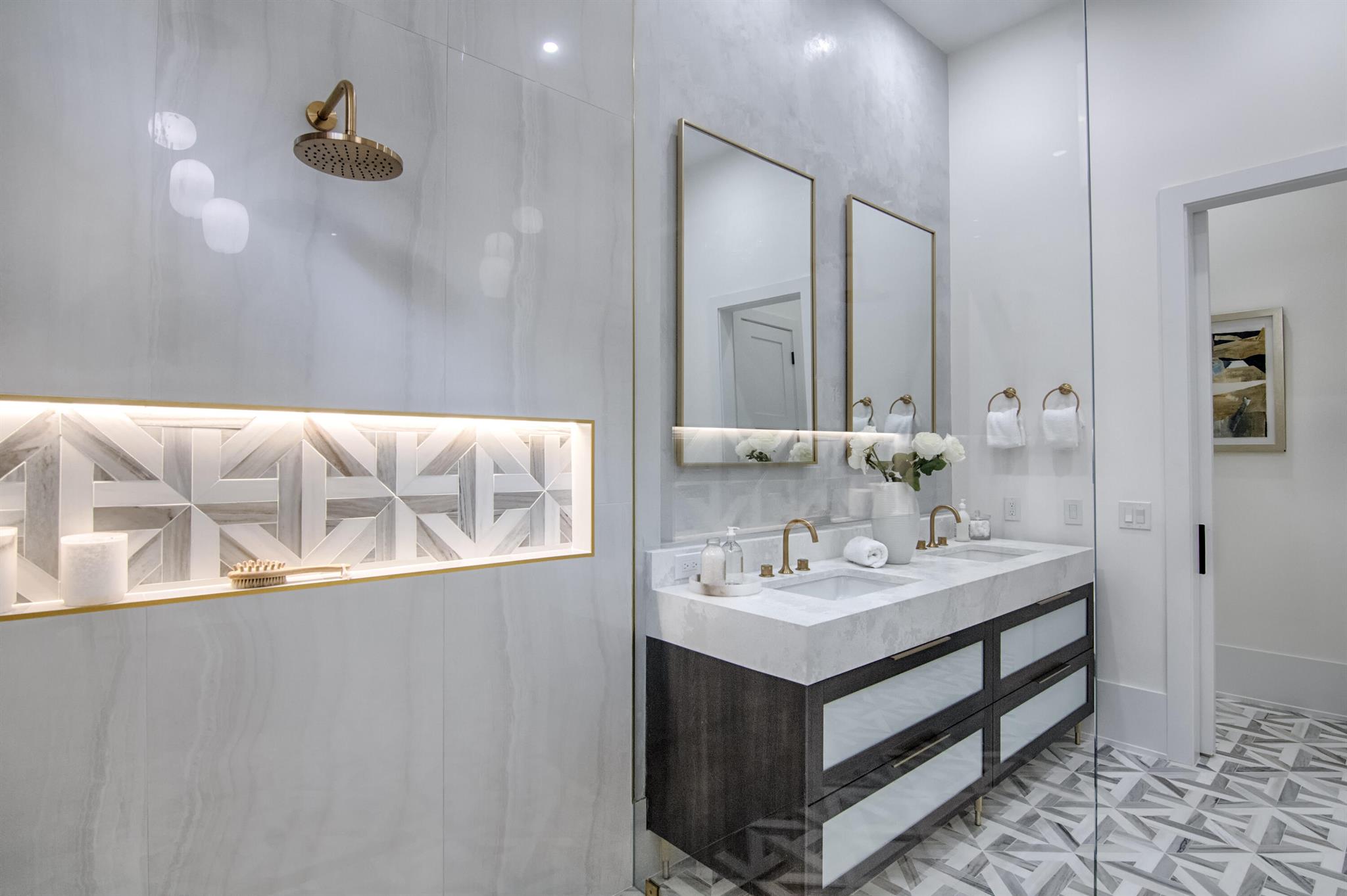 Step into this newly constructed residence that transcends the ordinary, a home where architectural artistry meets effortless livability. Every space has been curated with exquisite attention to detail, blending natural textures, timeless materials, and cutting -edge design. A show -stopping kitchen anchors the home with rich wood finishes, quartz countertops, & floating shelves framed against a soft porcelain back splash. The dramatic island with custom wood inlay invite both gathering and gourmet creation. Integrated professional grade appliances & statement lighting complete this sophisticated culinary space.