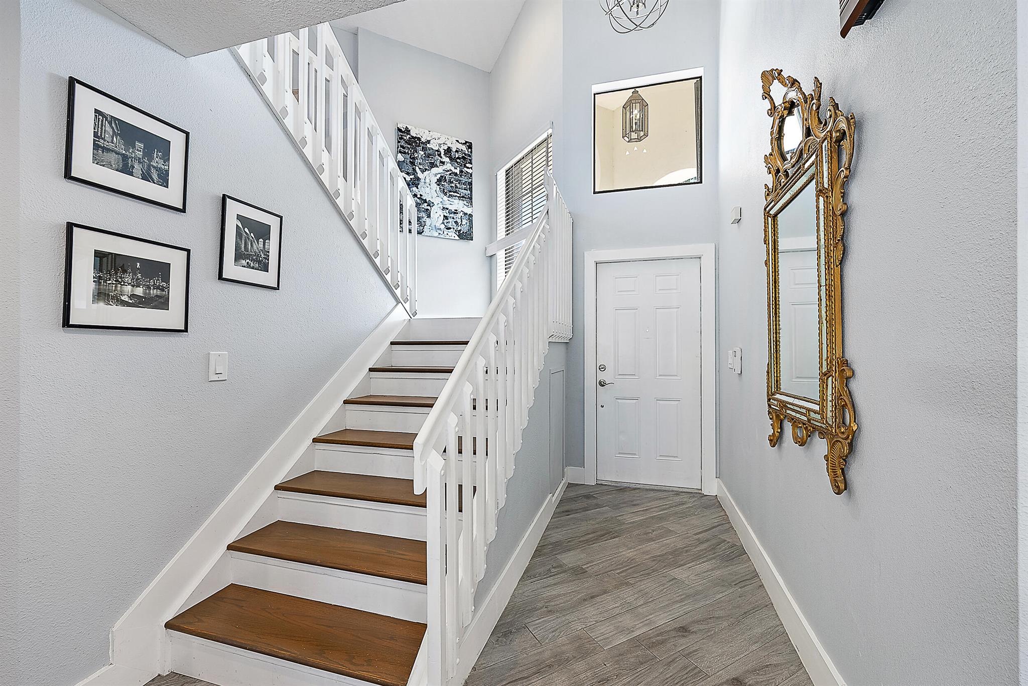 Experience refined living in this beautifully updated home nestled on one of the largest lots within the highly sought-after, gated community of Crystal Pointe in Palm Beach Gardens. The designer kitchen is the heart of the home--featuring new stainless-steel appliances in 2025, quartz countertops, white shaker soft-close cabinetry, a stone farmhouse sink, and a wine cooler. The kitchen opens seamlessly to the dining and living areas, creating an inviting flow for everyday living and entertaining. The primary suite is conveniently located on the first floor, while an open loft upstairs provides a versatile retreat alongside two spacious bedrooms with a Jack-and-Jill bath.