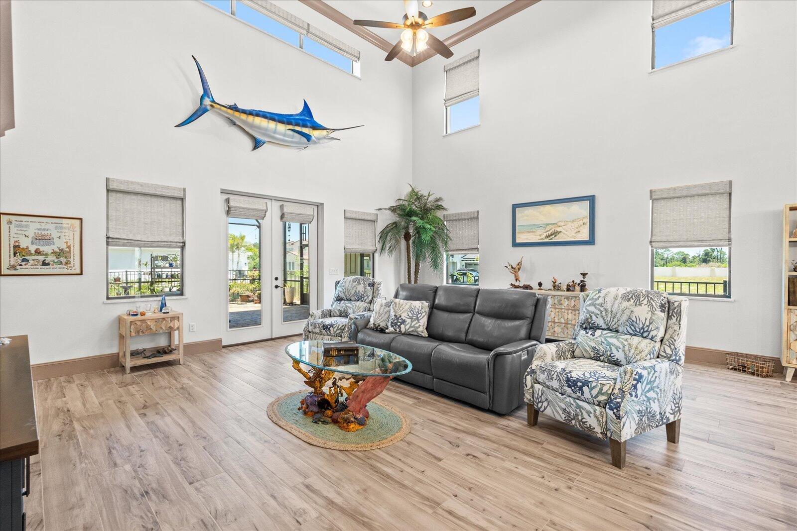 Wake up each day in this stunning home in the sought-after Marina Del Palma community--a TRUE BOATER'S PARADISE! Built with luxury and convenience in mind, it features hurricane-rated windows, a whole-home generator, ADA-compliant design, and elevator-ready construction. Inside, enjoy ceramic tile floors, a chef's kitchen with custom Jarlin cabinetry, a walk-in pantry, and premium appliances. The open layout is perfect for entertaining, with a main-floor primary suite offering two walk-in closets and a spa-like bath. Upstairs, a loft, bedroom, and full bath provide ideal guest or office space. Relax on the screened patio overlooking the pond and enjoy exclusive amenities--private boat storage, valet service, pool, fitness center, and more!