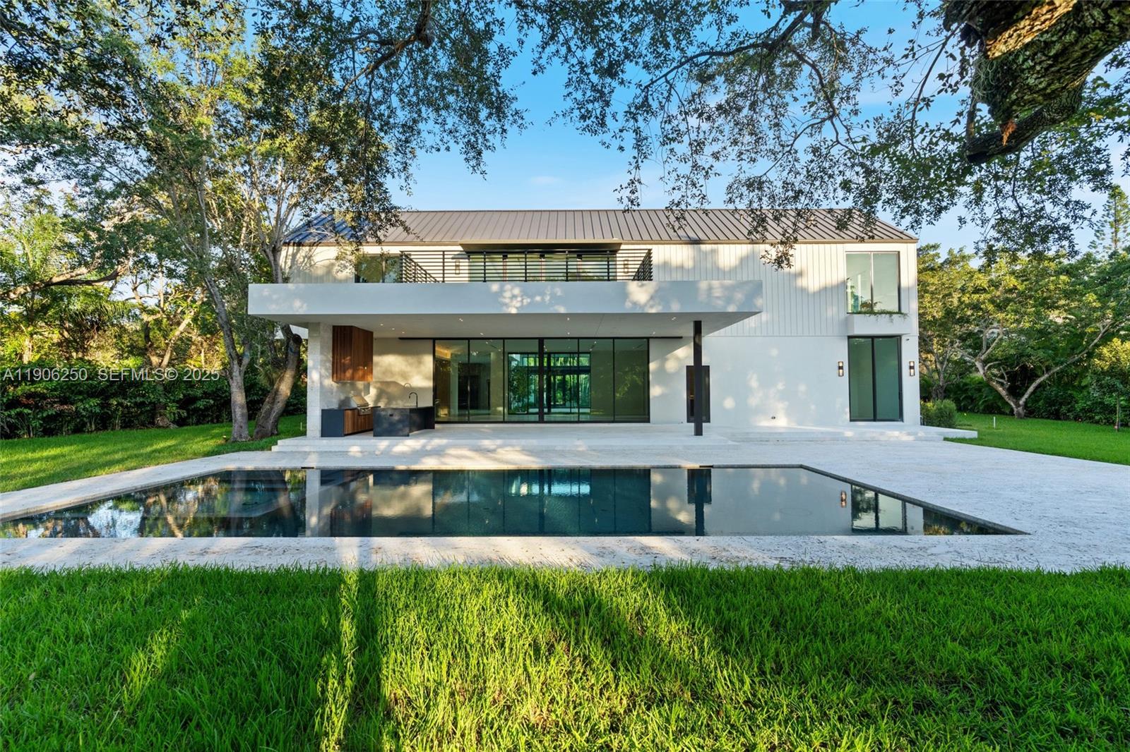 Crafted by Balli Group, this newly completed tropical modern estate epitomizes refined living in highly coveted Northeast Pinecrest. Thoughtfully designed by renowned architect Giorgio Balli, with interiors by Adi Balli, the 12,400 SF Residence rests on a quiet, gated 1+ acre site. It features 7 en-suite bedrooms, 7 full and 2 half baths, a 3-car garage with lift capacity for up to 6 vehicles, and dedicated golf cart or bicycle storage. Expansive glass walls open to a resort-style pool, summer kitchen, and lush gardens, creating seamless indoor–outdoor flow. Natural materials, soaring ceilings, and curated finishes define the interiors, complemented by a Savant smart-home system, elevator, wellness suite/gym, and media room.