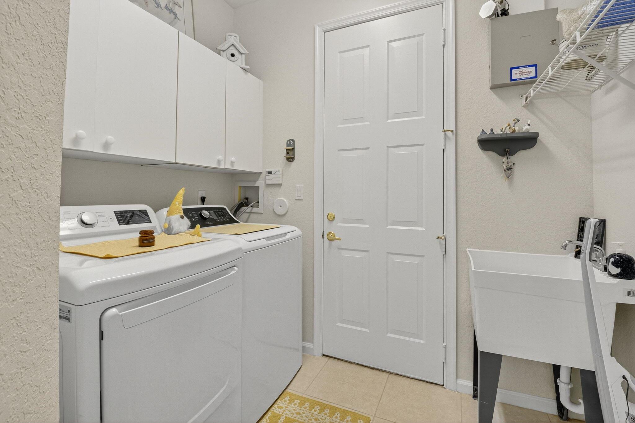 NEW ROOF OCT. 2025. Beautifully maintained & freshly painted 3/2, is located on a spacious corner lot, featuring hurricane shutters, newly installed gutters & tinted windows for comfort & peace of mind. This move-in-ready open home concept is enhanced w/ a neutral pallet, elegant built-in bar & porcelain tile floors, creating style & function-perfect for everyday living & entertaining. The Kitchen is modern light & bright, accented w/ Quartz counters, matching backsplash, stainless appliances & a large pantry. Venetian Isles is a vibrant 55+ community offering country club living. Amenities include a new clubhouse w/ a restaurant serving breakfast & lunch, PLUS an upstairs bistro bar serving dinner. The social hall is utilized for weekly parties & shows,+ craft room, library, & billiards.