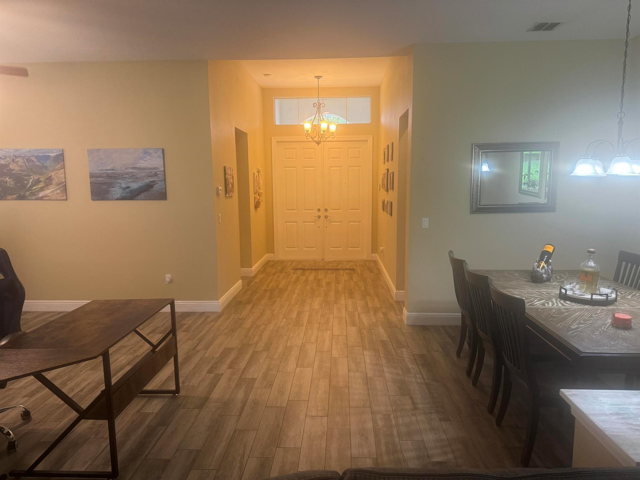 You will fall in love with this impeccable single story house in the fantastic community of Porto Sol! This fully upgraded 3 bed, 3 bath home was just recently built in 2013 and is full of luxurious and modern features. Gourmet kitchen includes S/S appliances, beautiful granite counters and dark wood cabinets. The living areas and bedrooms all feature Italian porcelain tile mimicking vintage faded hardwood floors. The 3rd bedroom has been upgraded to a suite with a full bath. A covered patio overlooks a quiet, private backyard with ample space to build a pool. This move in ready home is located on a quiet street in Porto Sol, one of the best gated communities in Royal Palm Beach with a clubhouse that features a resort style pool. The oven is new and has built in air fryer.