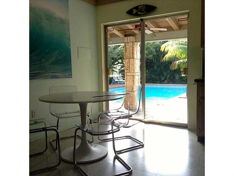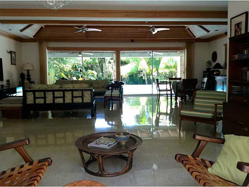 135' on GABLES WATERWAY Big-boat dockage. Coral cut-in boat slip w 800sf deck over enclosed boathouse. 2 tall bridges to Bay. High custom wood ceiling & full glass doors to patio, pool (20x33) & completely private yard. Covered patio & outdoor kitchen/di ning. 4th bedroom/den. Oversize 2car garage w maids area. Separate east & west side of house with 2 water heaters & 2 ACs. New roof. Enjoy as-is or expand for resale/profit. Huge expansion possible ~1/2 Acre High Land. FLOOD INS NOT REQUIRED! Owner/Agent