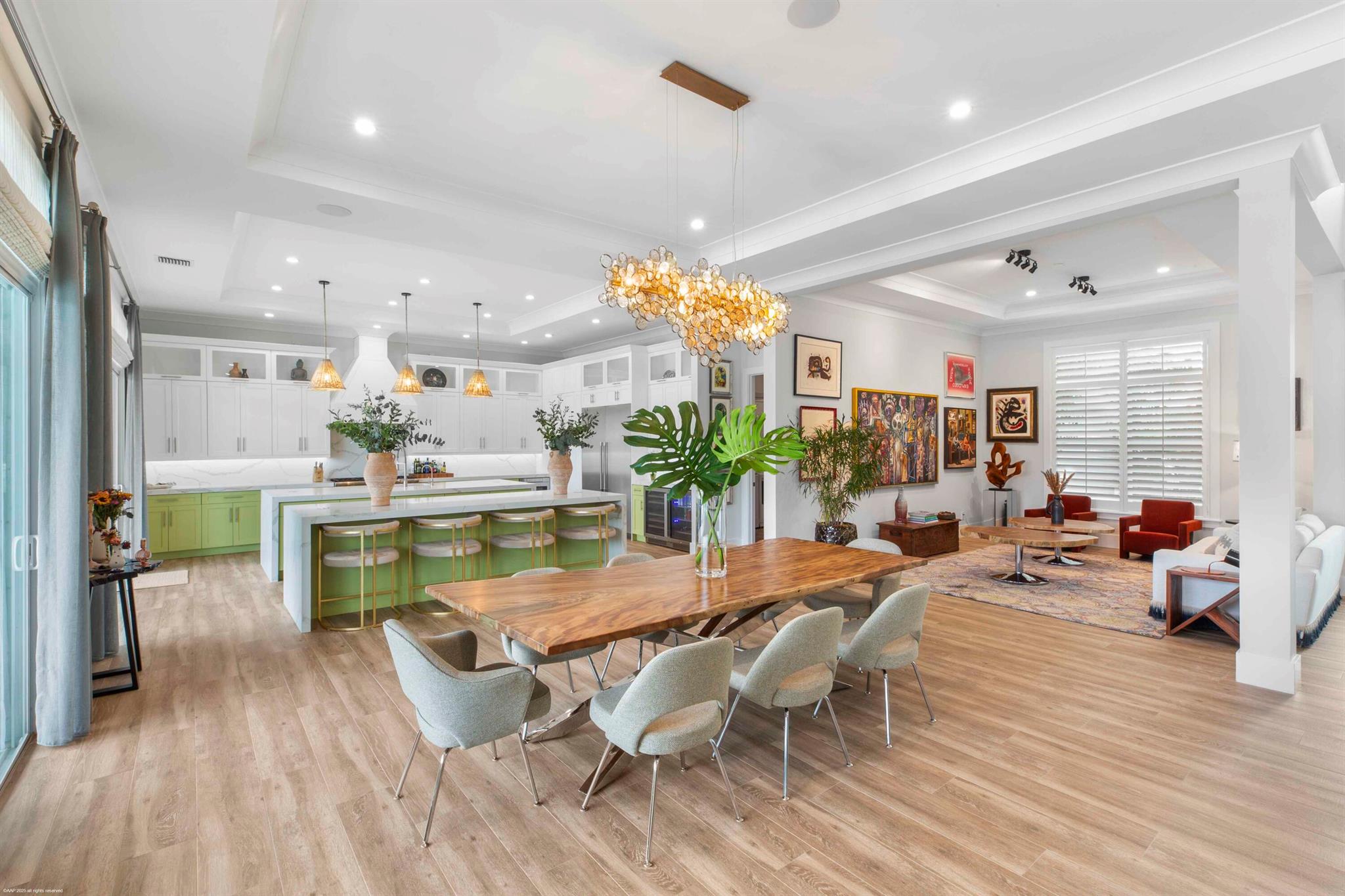 Built new in 2020, this fabulous Palm Beach Gardens Modern Island Smart Home boasts 5 bedrooms and 5.5 baths and over 7900 of total sq ft! The open floor plan includes a Gourmet Chef's kitchen with 2 large islands and a huge pantry! A wall of French Doors all open to a massive covered and screened patio with a summer kitchen and a beautiful heated infinity pool/spa and 100' of waterfront including a boat dock!The primary suite is stunning with a massive bath and huge closets. All the bedrooms upstairs access a large open balcony to capture the water views or to watch a sunrise or sunset. The home has high ceilings with recessed lighting, Plantation Shutters, an elevator and a whole house generator. It's a boaters paradise yet just minutes away from everything.