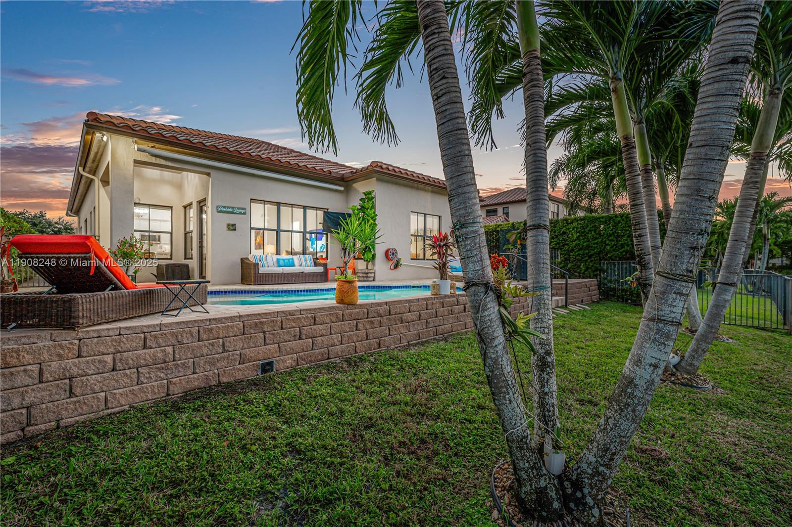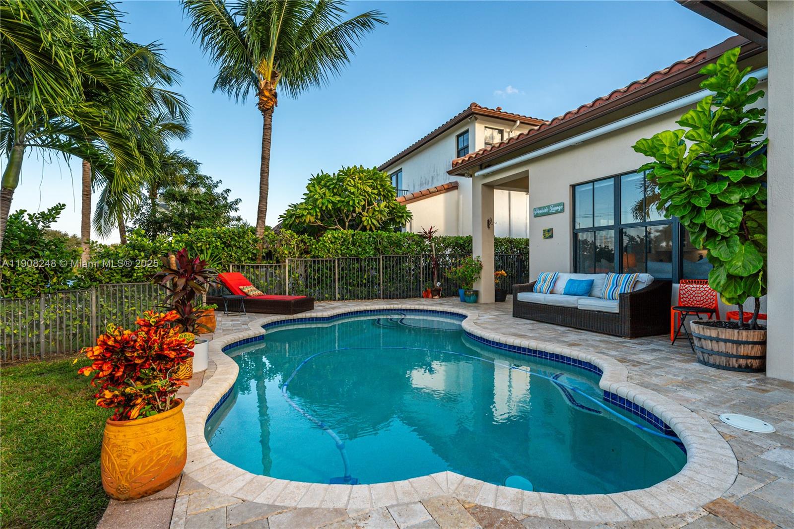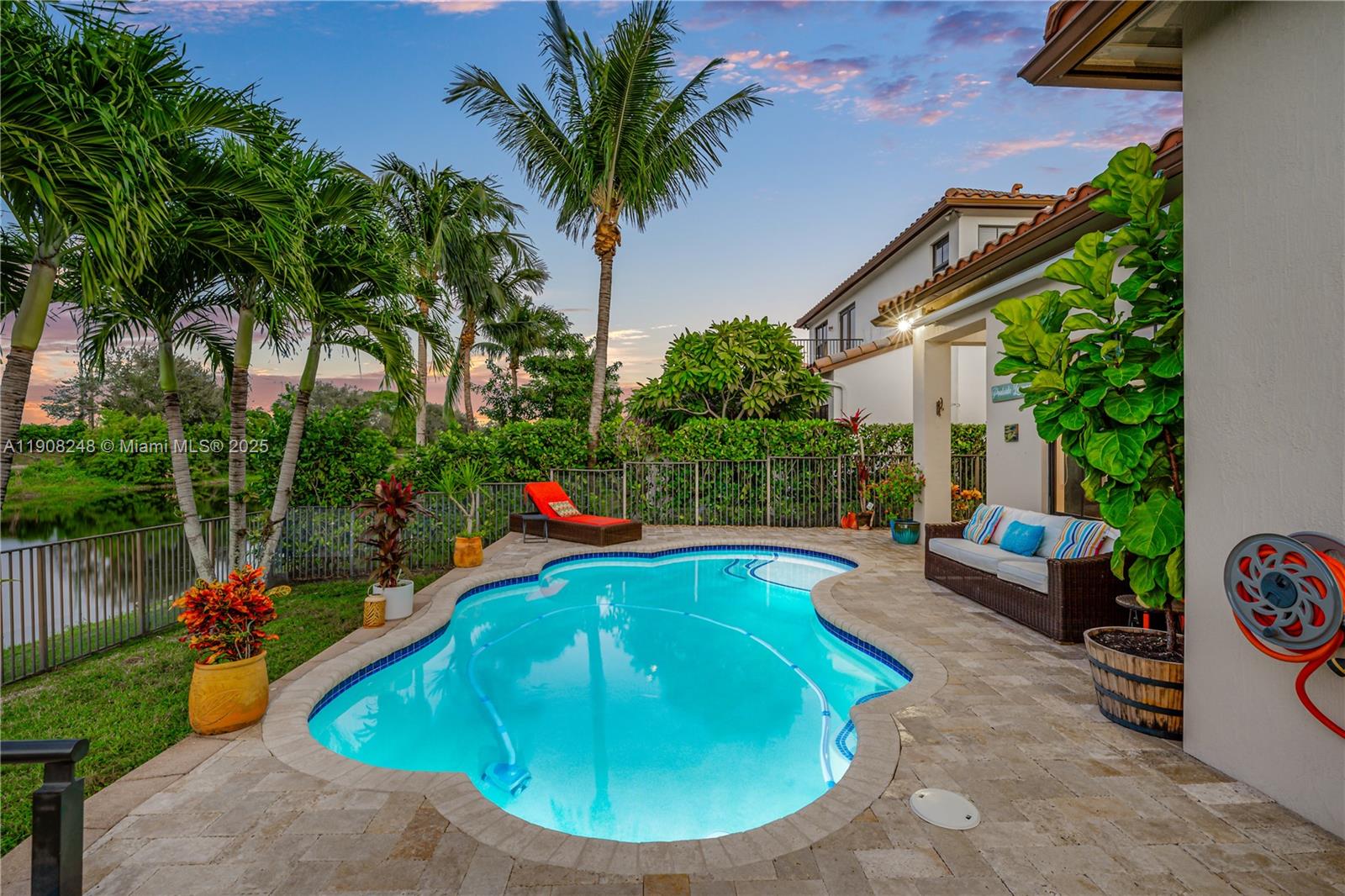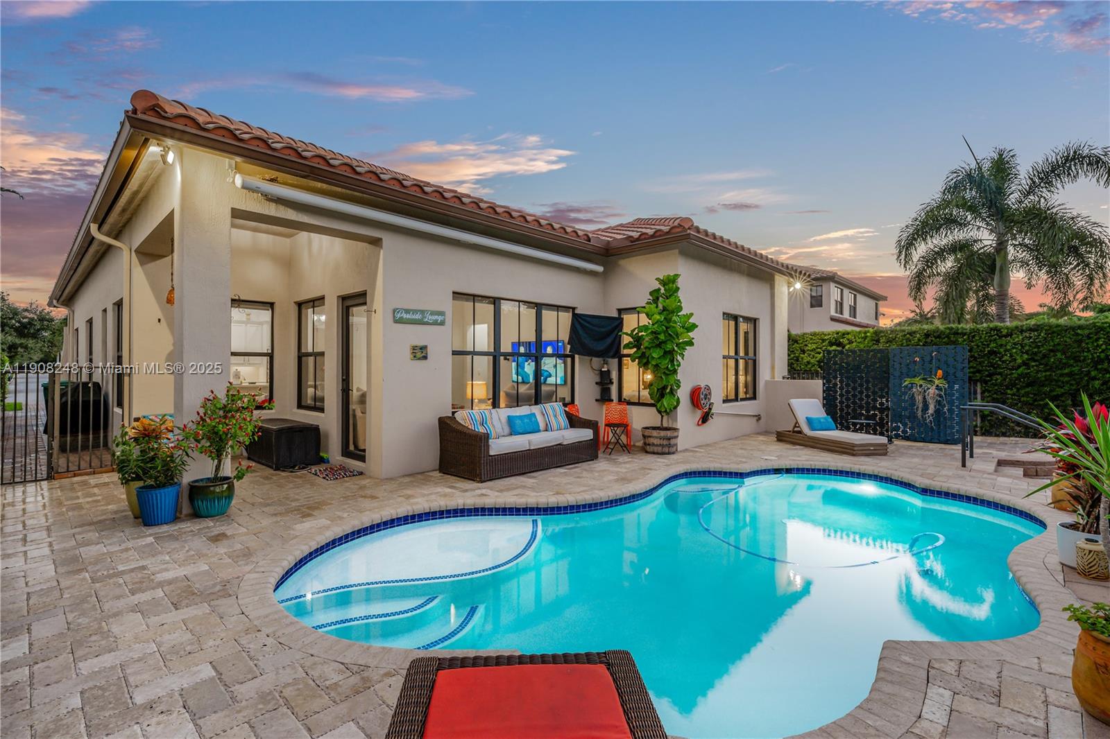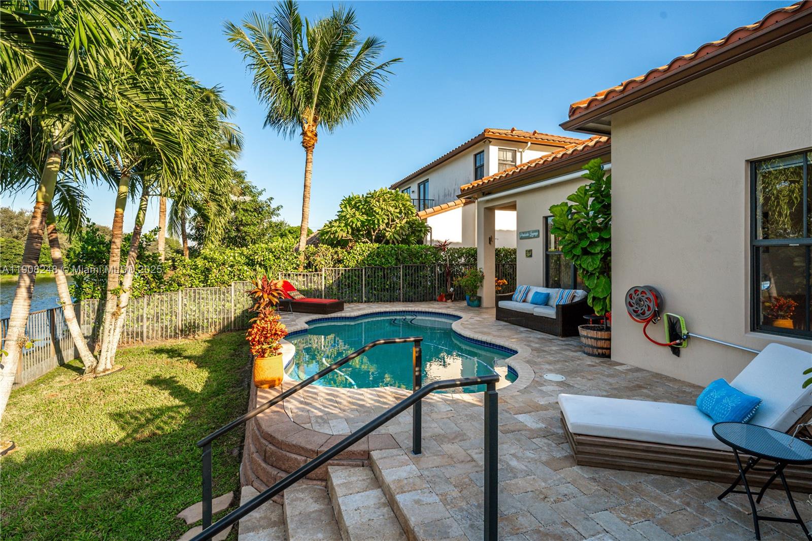 GORGEOUS 4-BED, 3-BATH CHAPALA MODEL LOCATED IN THE LUXURIOUS GATED COMMUNITY OF MONTERRA! BRIGHT & FUNCTIONAL FLOORPLAN FEATURING TILE FLOORING & SOARING VOLUME CEILINGS THROUGHOUT. THE UPGRADED KITCHEN FEATURES QUARTZ COUNTERTOPS, WHITE SHAKER CABINETS, STAINLESS STEEL APPLIANCES, & OPENS TO THE SPACIOUS LIVING AREA - PERFECT FOR ENTERTAINING! ENJOY PEACE OF MIND WITH IMPACT WINDOWS & DOORS THROUGHOUT & A BRAND NEW A/C UNIT (2025). THE BACKYARD IS YOUR PRIVATE RETREAT! FEATURING A HEATED POOL, MOTORIZED RETRACTABLE AWNING, & TRANQUIL WATER VIEWS IN A FULLY FENCED SETTING. MONTERRA OFFERS RESORT-STYLE AMENITIES INCLUDING A CLUBHOUSE, POOL, FITNESS CENTER, TENNIS & BASKETBALL COURT, DOG PARK, & MORE. PRIME LOCATION CLOSE TO A+ SCHOOLS, MAJOR HIGHWAYS, & EXCELLENT SHOPPING & DINING OPTIONS!