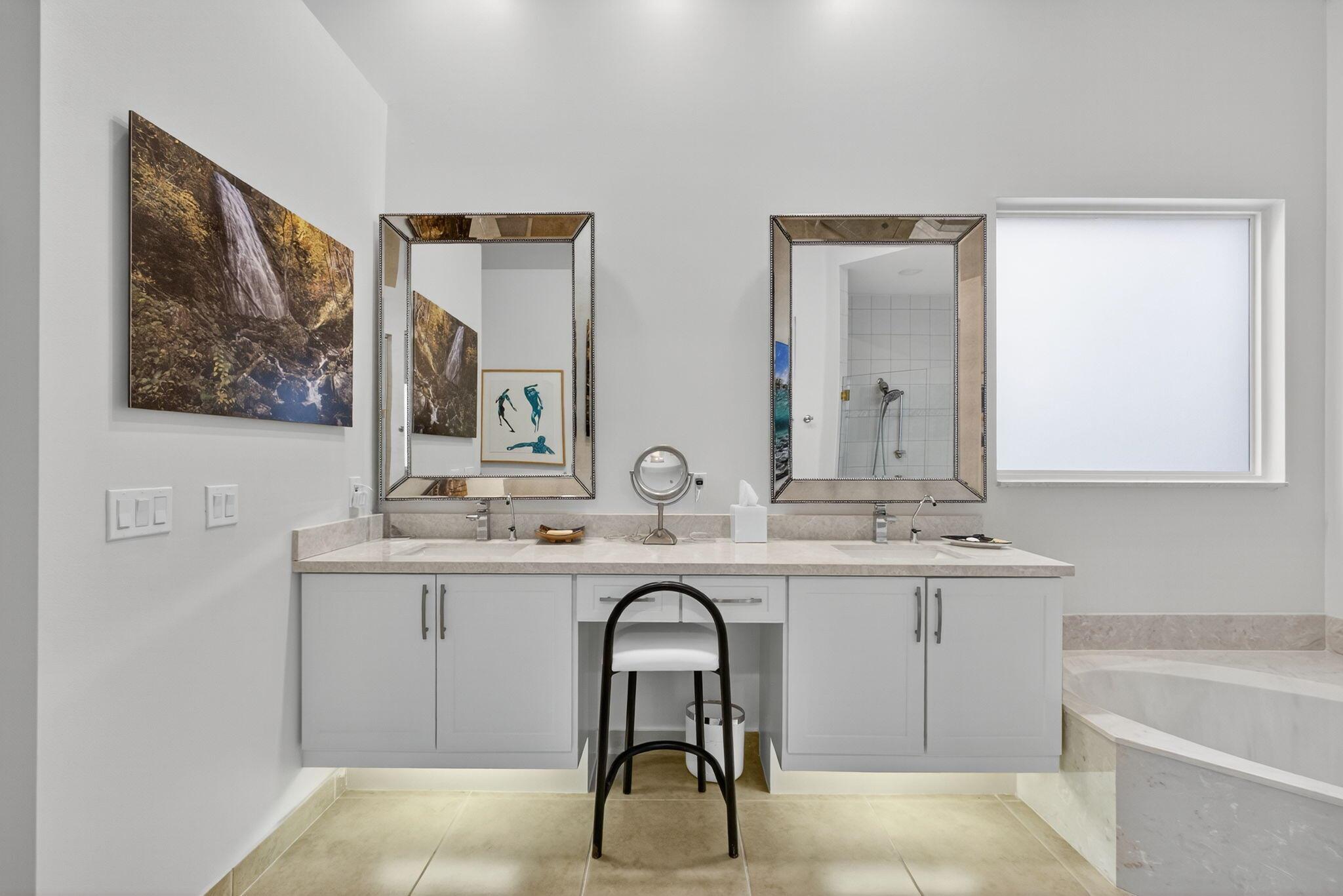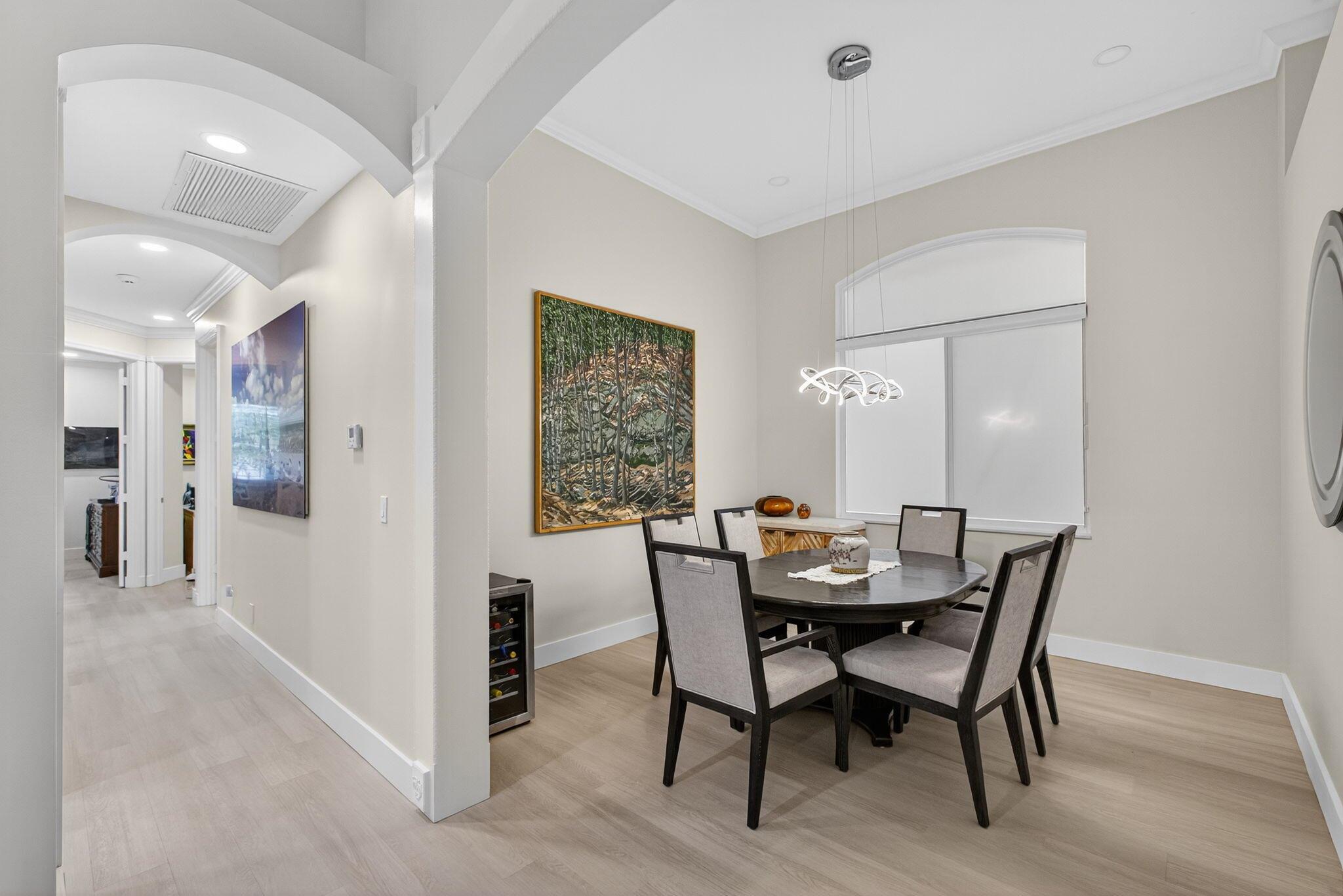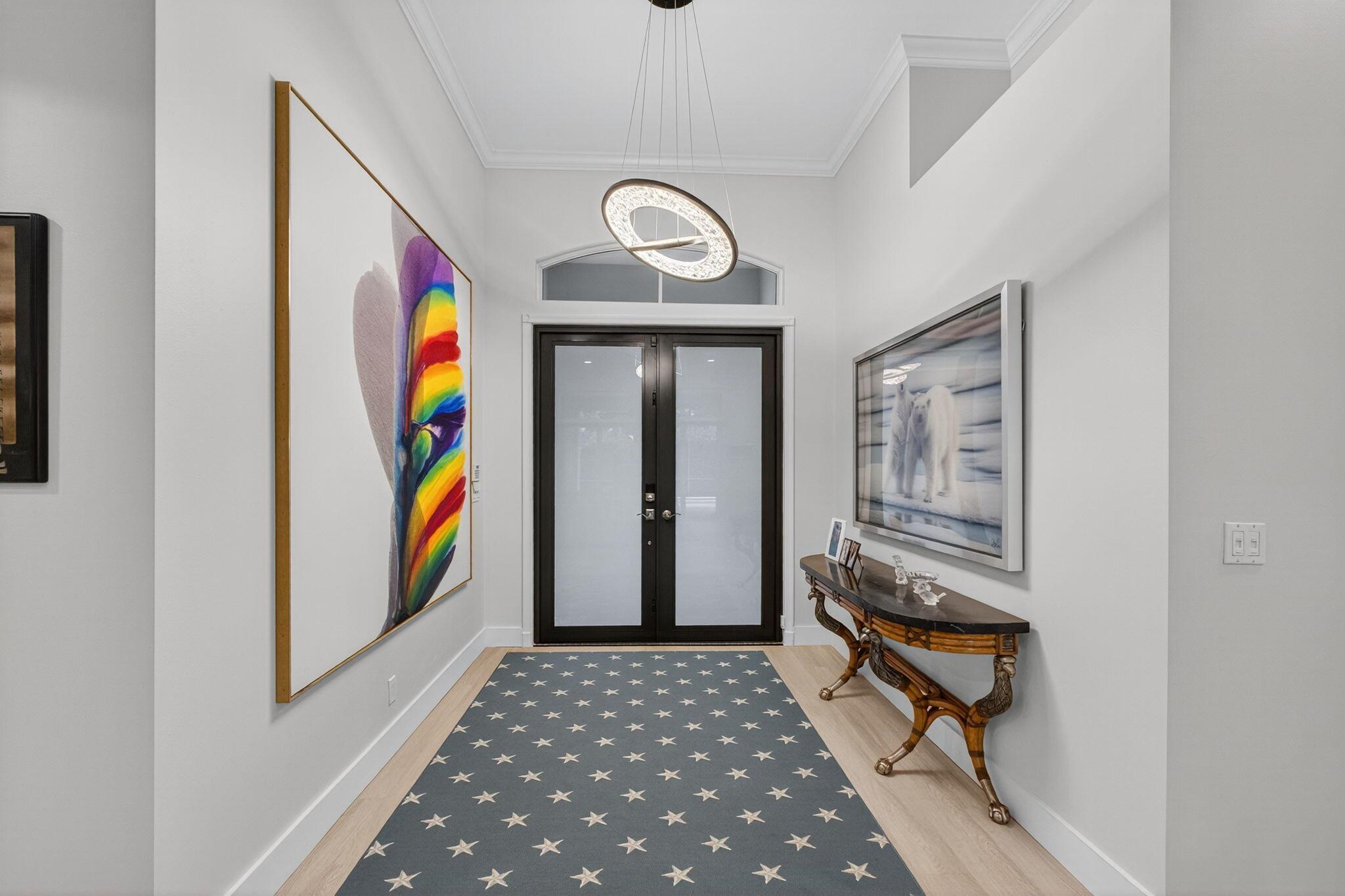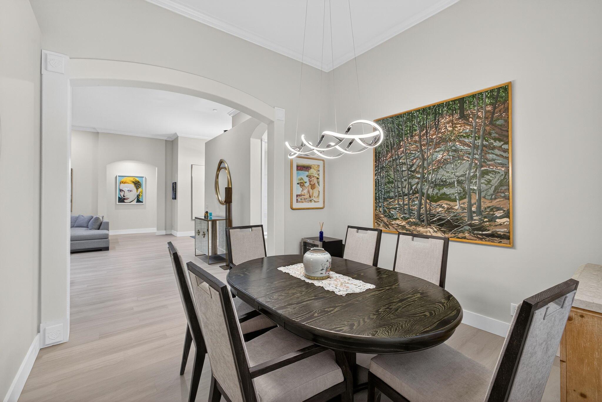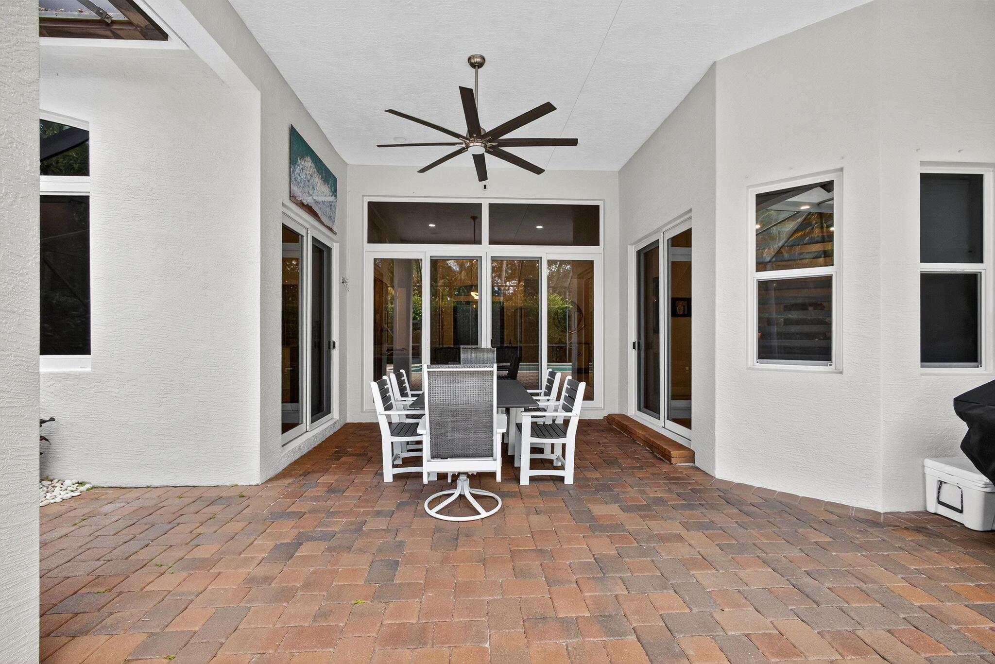 Must see this Beautifully remodeled one-level pool home in one of best gated communities in PBG. This 4-bedroom, 3 full bath ranch home has one of the nicest and most open floor plans in all of Mirabella. Renovated gourmet kitchen open to the family room features quartz countertops with a waterfall edge center island and matching quartz backsplash. High-end Bosch appliances & refinished wood cabinetry. All new light fixtures & LED recessed lighting throughout the home. Upgraded plank composite wood flooring throughout the entire home with upgraded wood base & crown molding. Large saltwater pool with screened enclosure, outdoor shower & large covered lanai area. Full impact glass windows & doors, whole house backup generator, custom automated Hunter Douglas window treatments + much more!