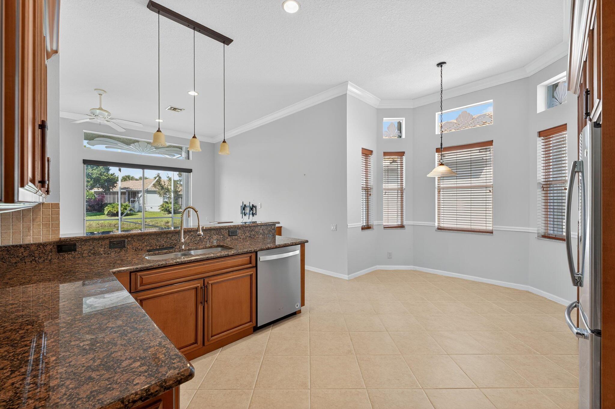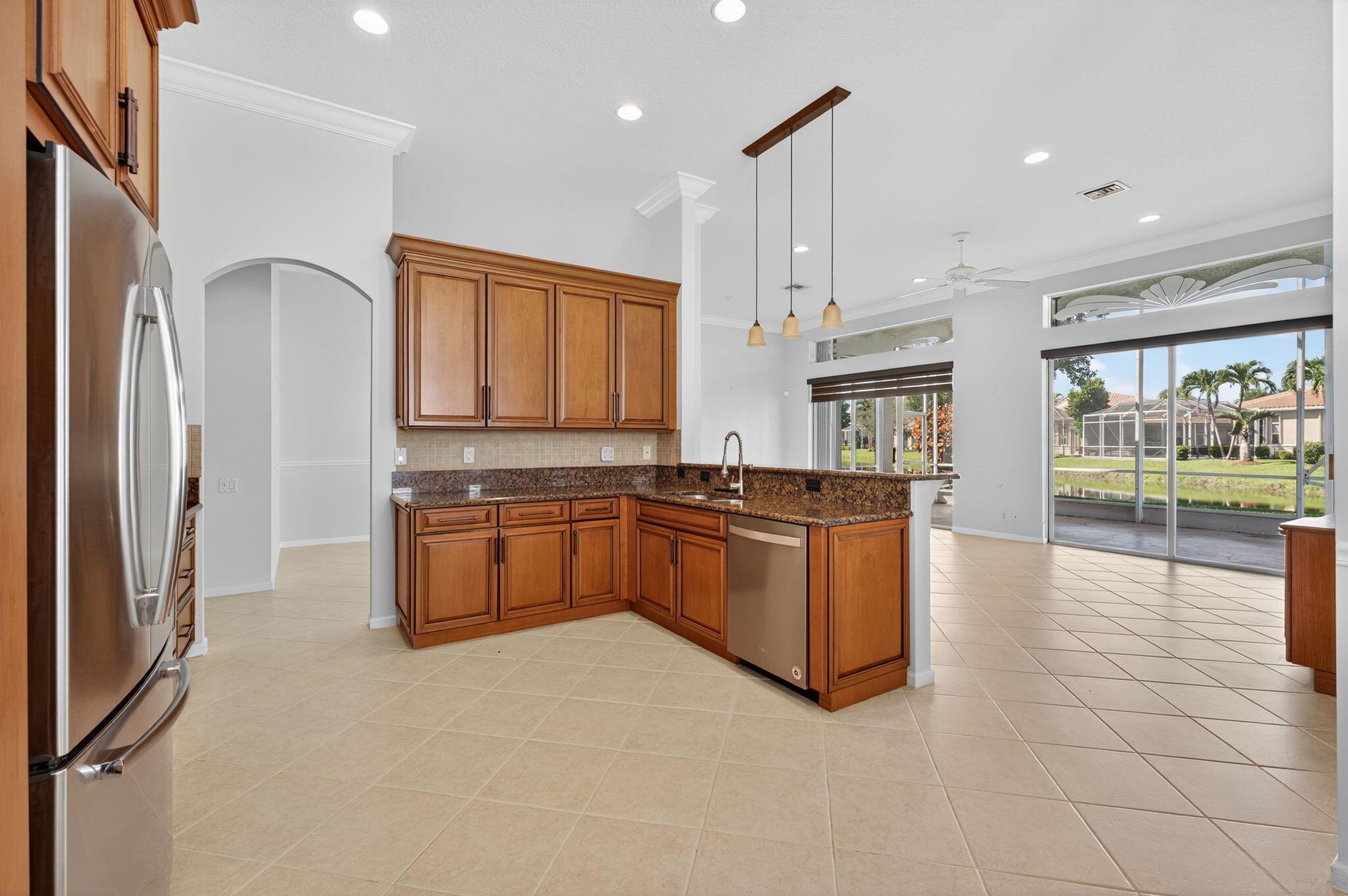 Lovely Alexander great room design floor plan in desirable Bellaggio...Upgraded kitchen with a generous amount of wood cabinetry. This kitchen is an entertainers happy place open to the great room and dining room with views of the lake and screened lanai. The primary bedroom is separate from the other bedrooms affording your house guests their own privacy. Perched on a quiet lake lot, listening to the birds is one of the few sounds you will hear. This home comes equipped with a whole house generator, offering peace of mind during the not so nice weather days. Of course, if you ever leave your little paradise, you have the fabulous Bellaggio clubhouse to fill in your available moments.