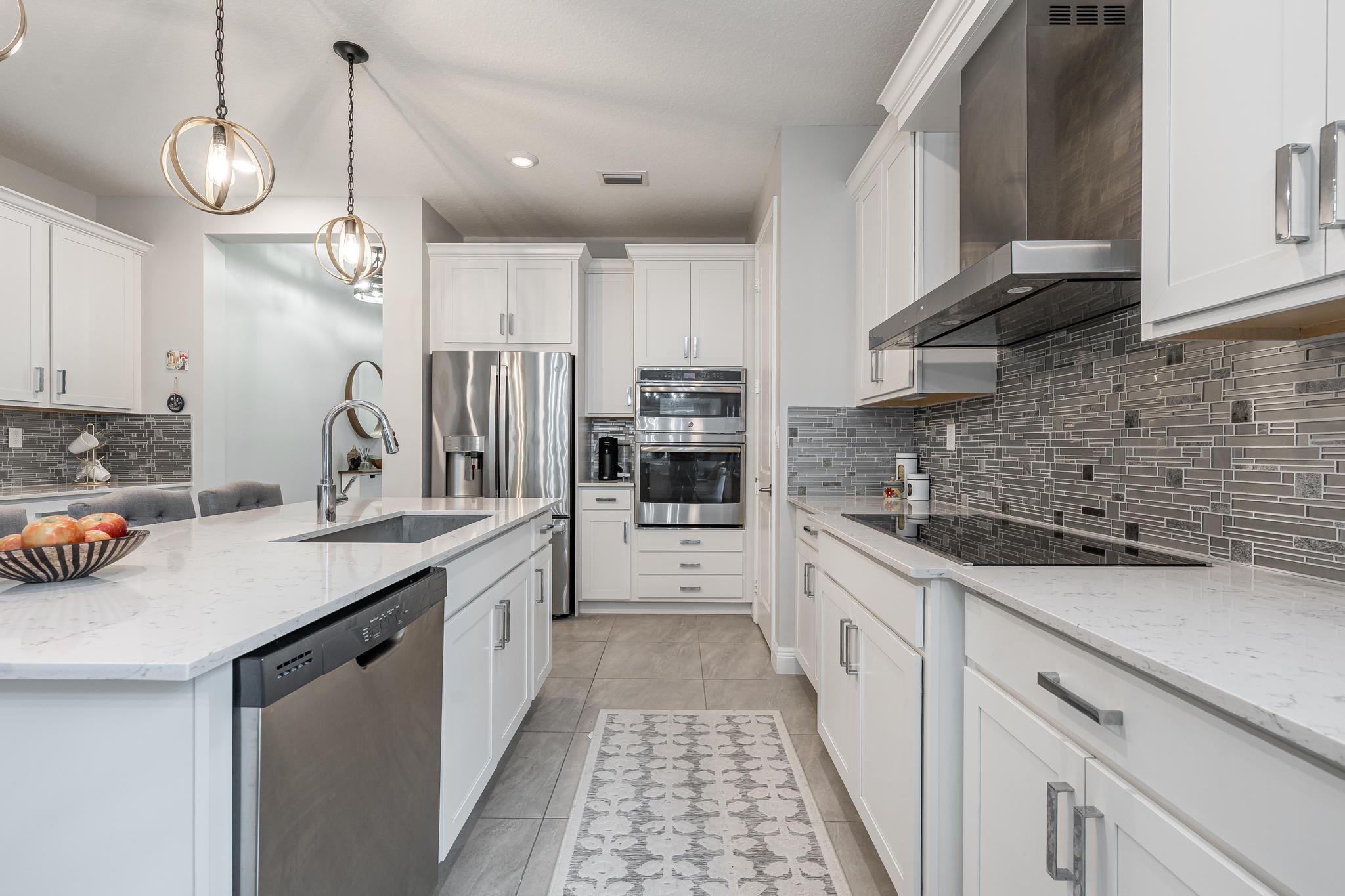 Home for the Holidays! Stunning, Scenic Winding Waterviews are YOURS from this Pitoresco Floorplan w/Low Country Elevation in Gorgeous, Gated VELEIROS! 2/2+ Den(Convertible to 3rd Bdrm). 2-Car Garage. Lush Foliage Lines Front Porch. Enter to Foyer & Den, Offering a Preview of High-End Window Treatments, Fixtures & Finishes to Follow Ahead in Spacious Living-Dining Area. Tile T/O! Open Kitchen Boasts GE Stainless Suite w/Wall Oven, Hood, Quartz Counter & Island, Pantry, Shaker Cabinets, Glass Backsplash. Beyond the Interior, Elegant Metal Fence Lines the Waterfront Yard. Covered Paver Patio & Room for Pool! Owner Suite w/Ensuite Bath, Walk-in Closet w/Built-ins. Wind Back to Guest Rm & Laundry. Impact Windows/Doors. Smart Home System Controls Garage, Front Door, Thermostat. Pet Friendly.