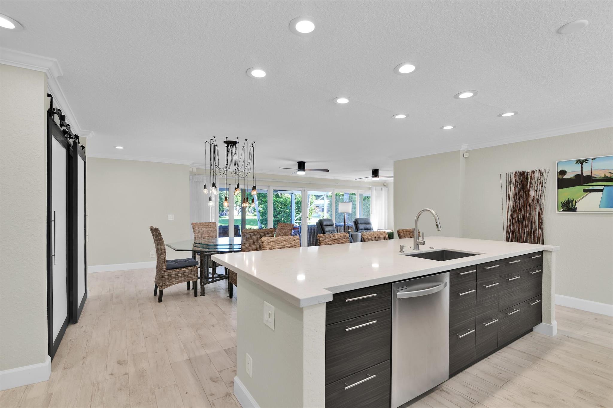 Experience lakeside living at its finest in this beautifully updated 2B/2BA waterfront home with a 2-car garage in Coco Wood Lakes- one of Delray Beach's most convenient, active-adult & pet-friendly communities near Atlantic Ave & the beach. This light-filled home offers open living areas flowing to a lanai & outdoor patio- perfect for relaxing or entertaining with tranquil lake views. A new glass-enclosed sunroom with split A/C adds versatile space for an office, studio, or gym. Modern kitchen features stainless appliances, dual barn-door pantries & a large island. Savoia Italia porcelain tile throughout, new impact windows/sliders, fresh interior/exterior paint, custom closets, updated baths, new W/D, Vivint security & landscape lighting. Low HOA includes cable, internet & amenities.