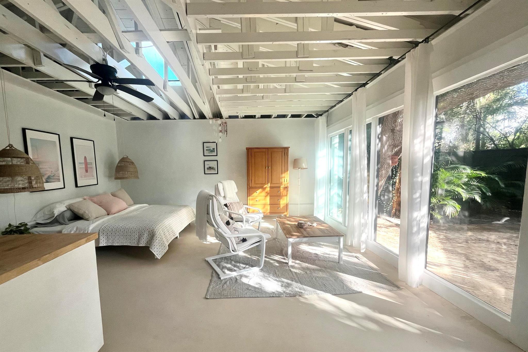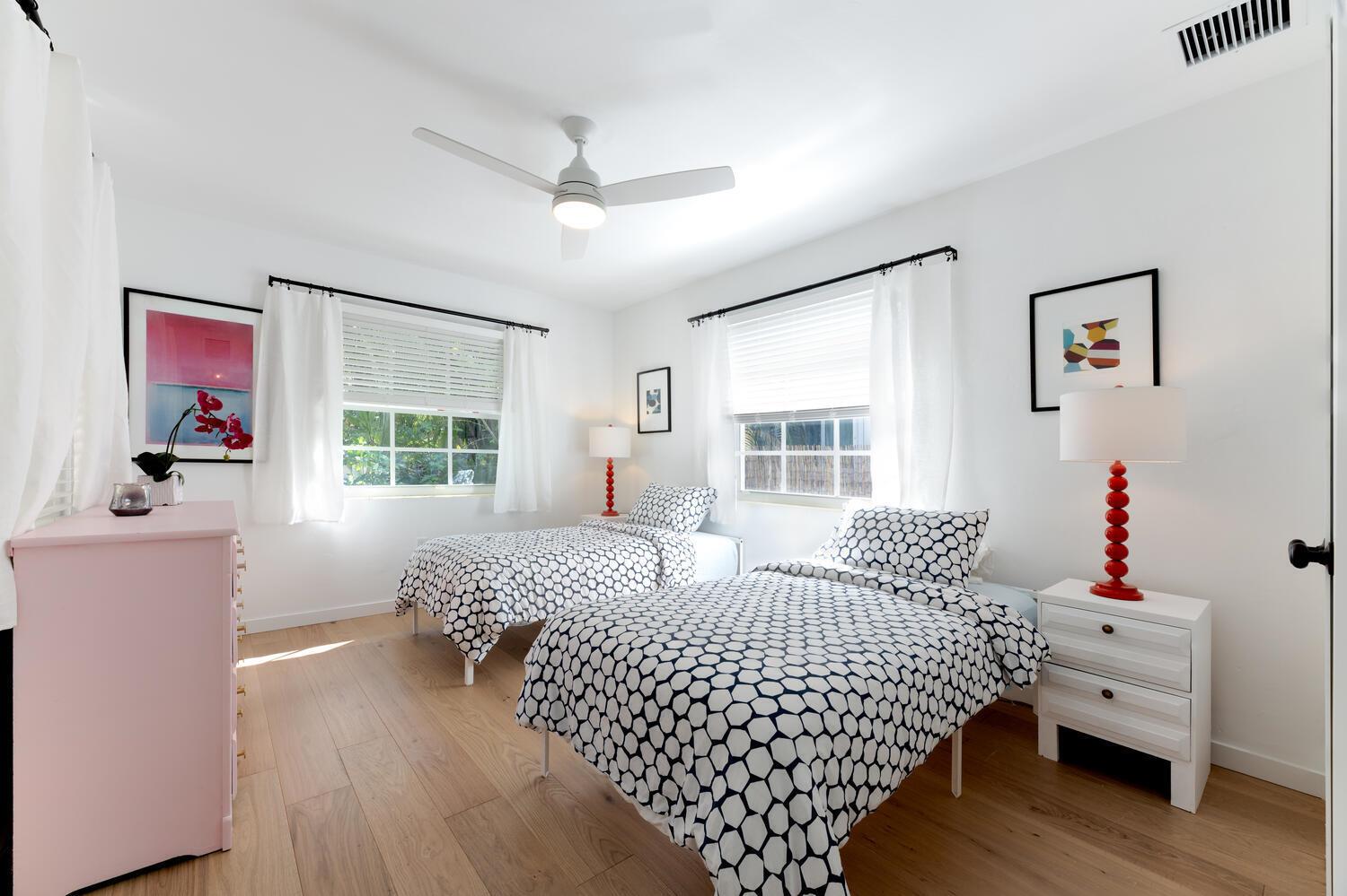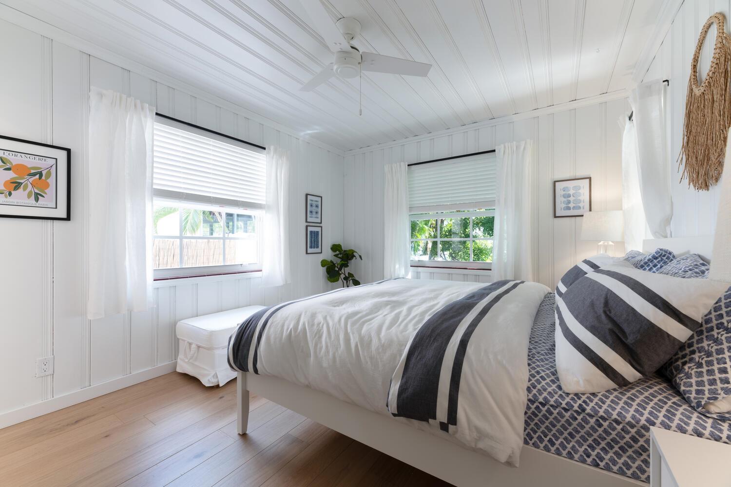 Located in the heart of Lake Worth Beach, just one block from the Intracoastal Waterway and Lake Worth Beach Golf Club, this beautifully renovated bungalow offers 2,113+/- total square feet with four bedrooms and three bathrooms, including a guest house.Framed by lush landscaping, the home welcomes you with a generous front porch that opens into the connected living and dining areas. The kitchen is situated just off the dining area and offers access to the patio, ideal for entertaining or relaxing outdoors.The primary suite features a walk-in closet and an en suite bath with dual sinks. Two additional bedrooms in the main house share a full bath.