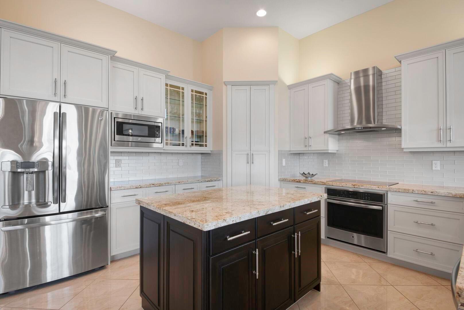 This stunning 3-bedroom plus den, 3-bath home in Valencia Cove showcases elegant design and modern comfort throughout. A glass double-door entrance opens to a formal living room with a coffered ceiling and a formal dining room with a vaulted ceiling, creating a grand first impression. The dream kitchen is beautifully appointed with granite countertops, a tiled backsplash, cabinets with pullouts, stainless steel appliances, a breakfast nook, and a snack bar, all flowing seamlessly into the spacious family room--perfect for entertaining or relaxing. The primary suite offers a peaceful retreat featuring a coffered ceiling, private access to the patio, two walk-in closets, and a luxurious bath with dual sinks topped with marble counters, a soaking tub, and a walk-in shower.