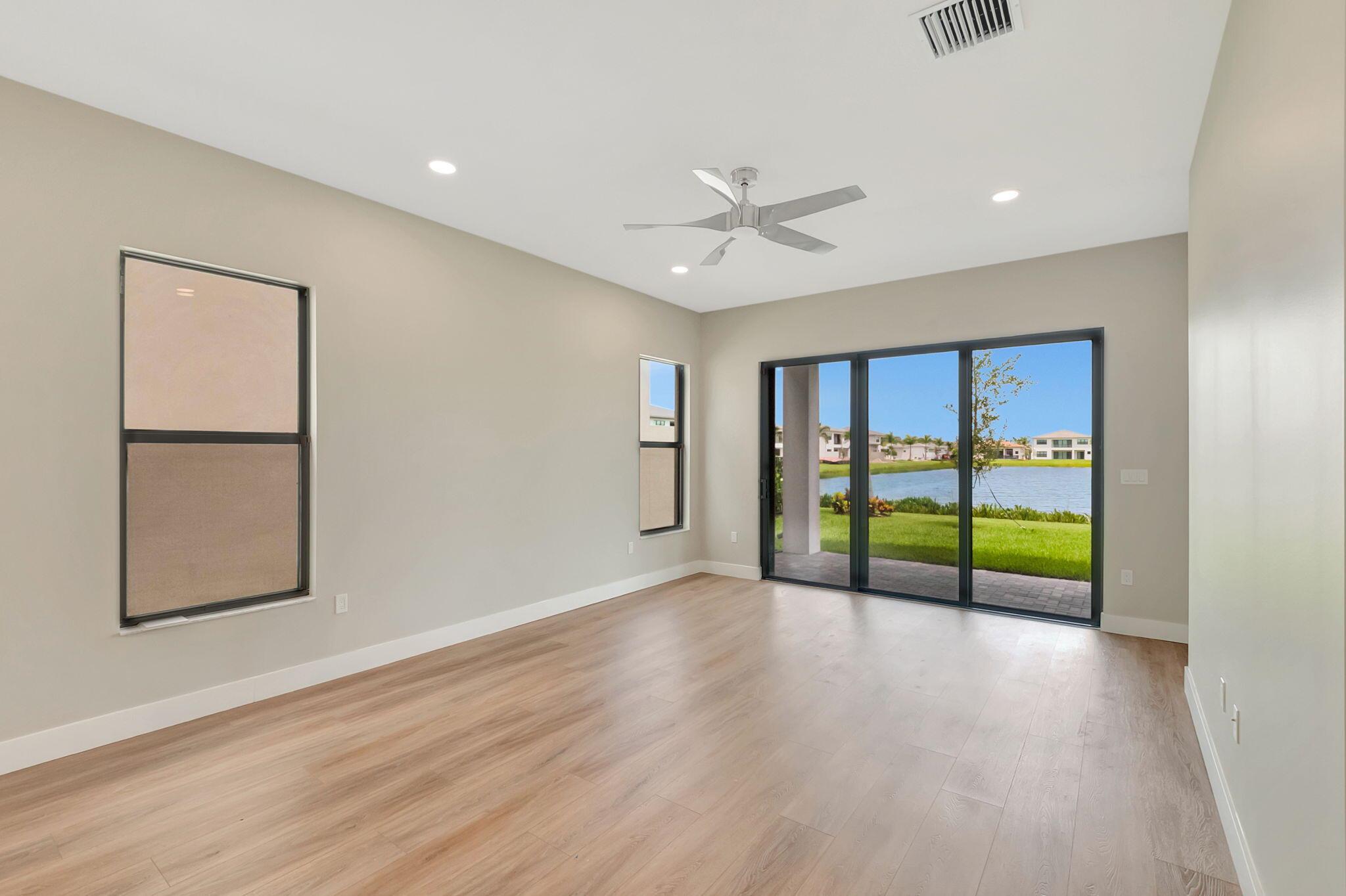 Welcome to the exclusive Lotus Palm community. Experience luxury living at its finest! This is your opportunity to reside in the LAKE FRONT MALDIVES model, offering 5 bedrooms, 5 full baths, 2 half baths, a Media Room, Loft, Game Room, and a 4-Car Garage. Designed with elegance in mind, the property features STUNNING UPGRADES including sleek 48x48 porcelain flooring, designer bathrooms with custom finishes, built-in closets, high-end light fixtures, and blinds. The first floor boasts an OPEN FLOOR PLAN highlighted by a GOURMET CHEF'S KITCHEN with custom cabinetry and a breakfast area flowing into a spacious family room--perfect for hosting gatherings. The main level also includes a sophisticated Dining room, Game room, Den, and a Guest br with an ensuite designer bathroom along with