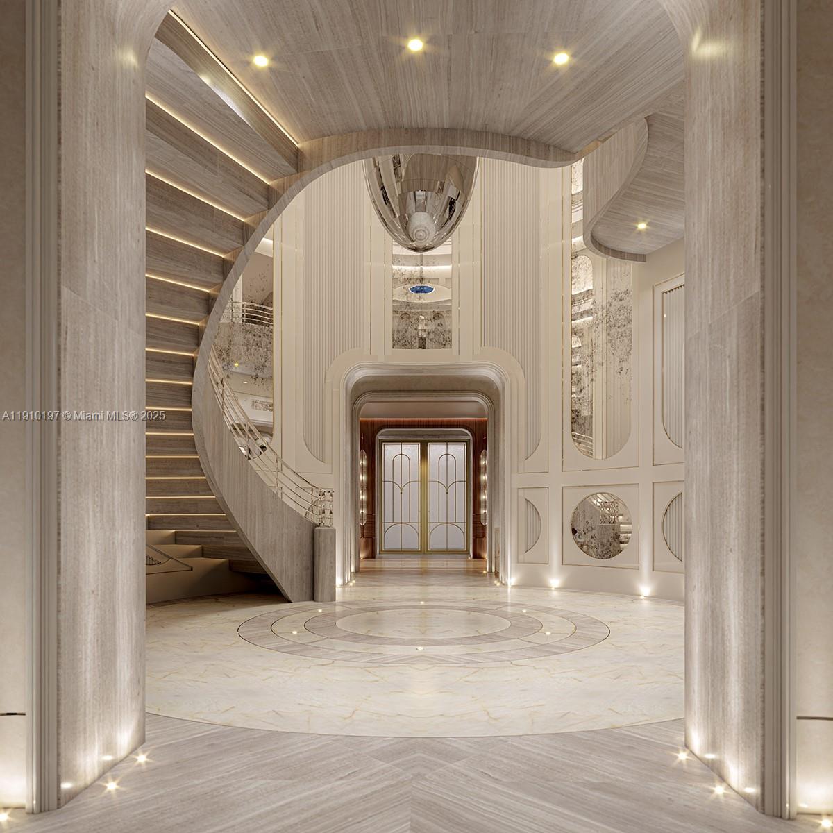 On one of the world’s most coveted addresses, Indian Creek, this 27,889 SF architectural masterpiece sits on an 80,000 SF lot with 200 feet of pristine waterfront. The estate’s plans and interiors were envisioned by world-renowned designer Ferris Rafauli. From the limestone façade and grand architectural proportions to the meticulously curated interiors, every detail showcases modern artistry and exceptional craftsmanship. A sweeping staircase beneath a 38-foot skylight creates a dramatic centerpiece, filling the home with natural light. This classically inspired residence offers endless views, indoor-outdoor living, and a sense of privacy and sophistication. A true expression of sculptural beauty, design, and enduring legacy, this estate defines the pinnacle of luxury waterfront living.