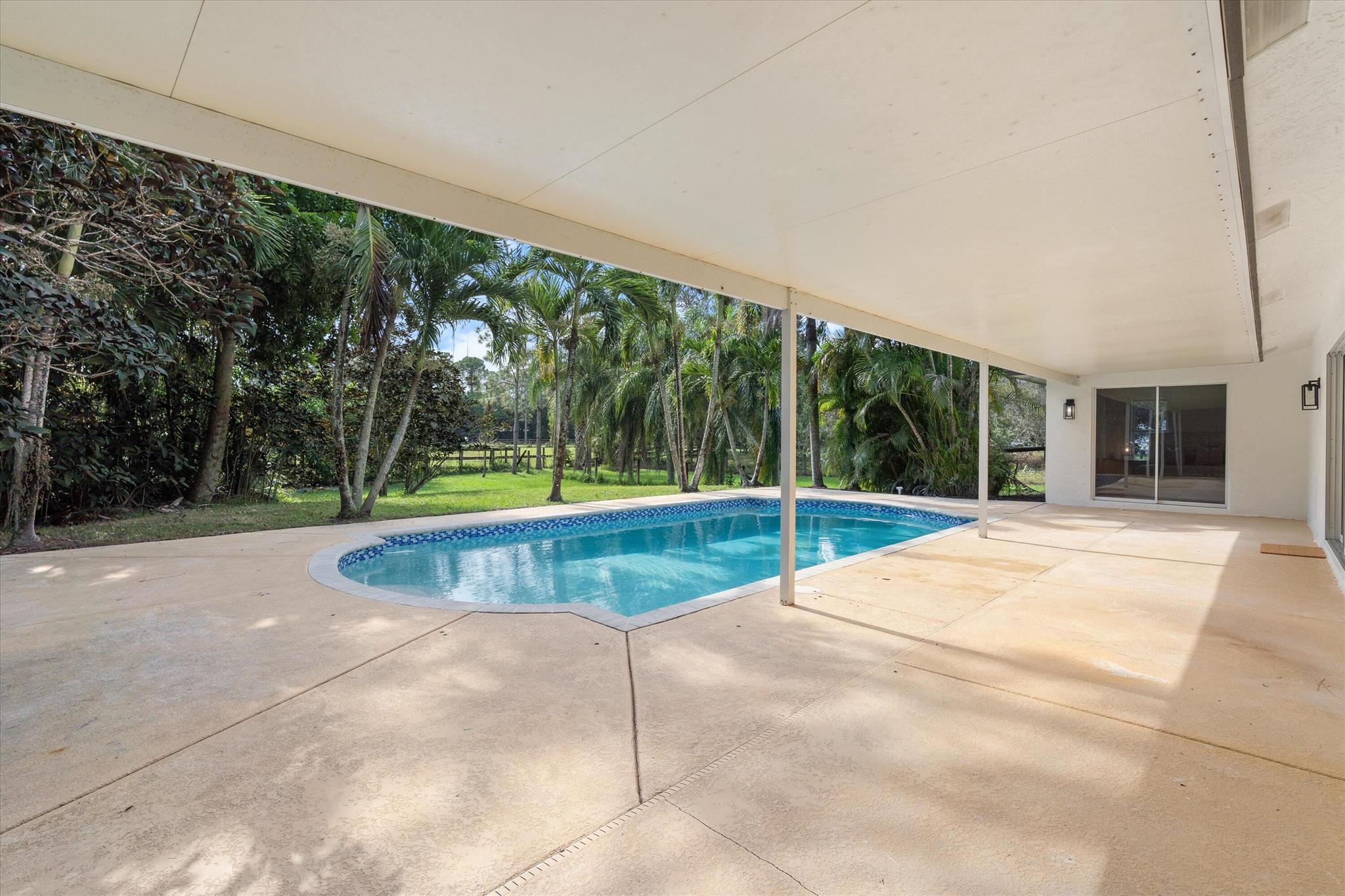OVERSIZED 1.80 Acre Pool Home With Detached 3 Car Garage + Attached 2 Car Garage. This Beautiful 4-Bedroom, 3-Bathroom + Den/Bonus-room residence has Undergone a Comprehensive Full Renovation, Blending Timeless Elegance with Contemporary Sophistication. Enter a Chef's Dream Kitchen Anchored by an Expansive Island Featuring Quartz Waterfall Countertops, New Flooring, Modern Lighting, Fully Reimagined Bathrooms and Fresh Interior and Exterior Paint. Key Enhancements Include a Brand-New Roof and New A/C, and Newly Refinished Pool and Pool Pump, All Nestled Within Meticulously Curated 1.80 Acres Shaded by Mature Trees that Ensure Seclusion and Tranquility. Seize the Rare Opportunity to Claim this Impeccably Reimagined Jewel in Jupiter Farms.