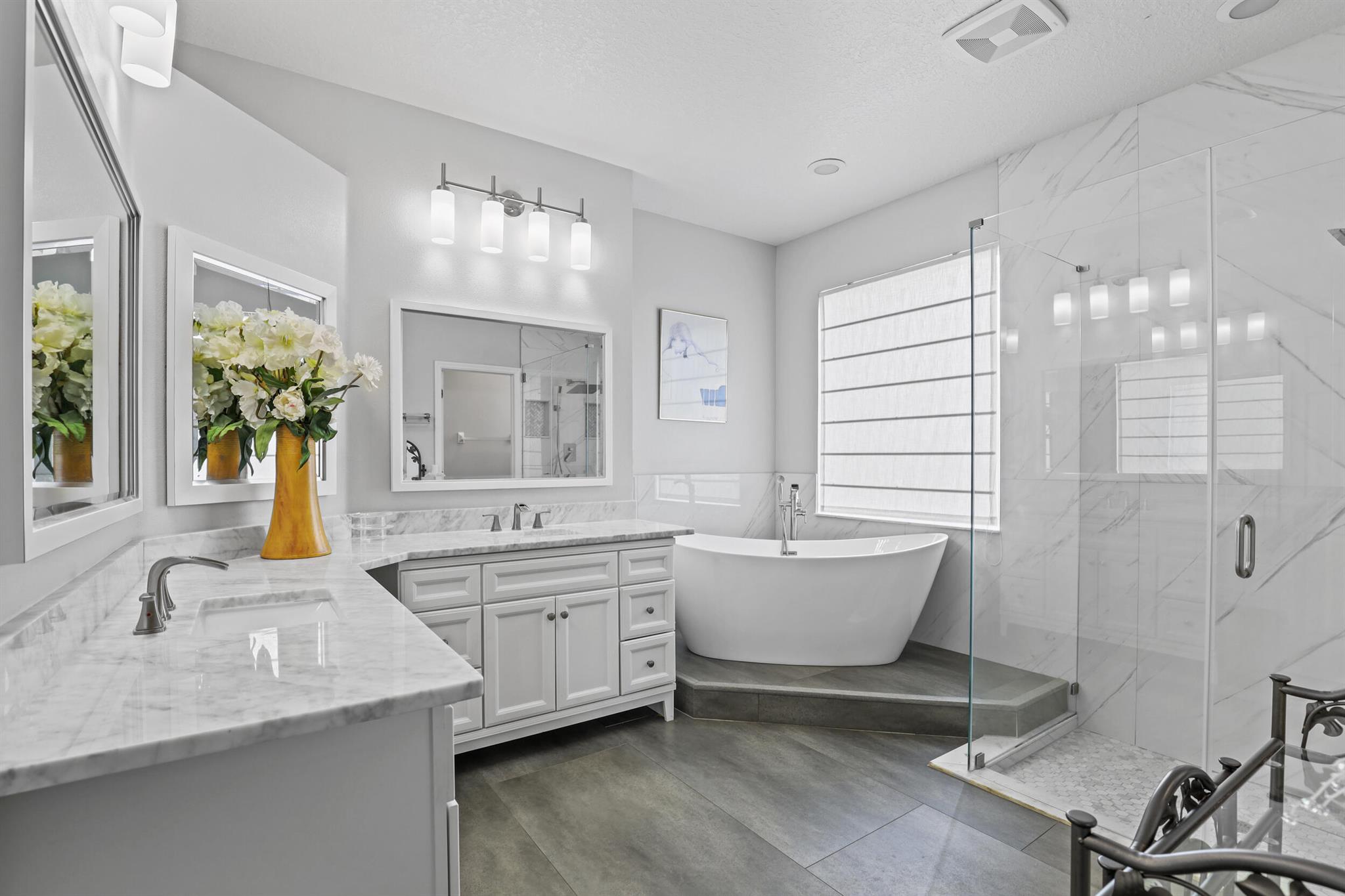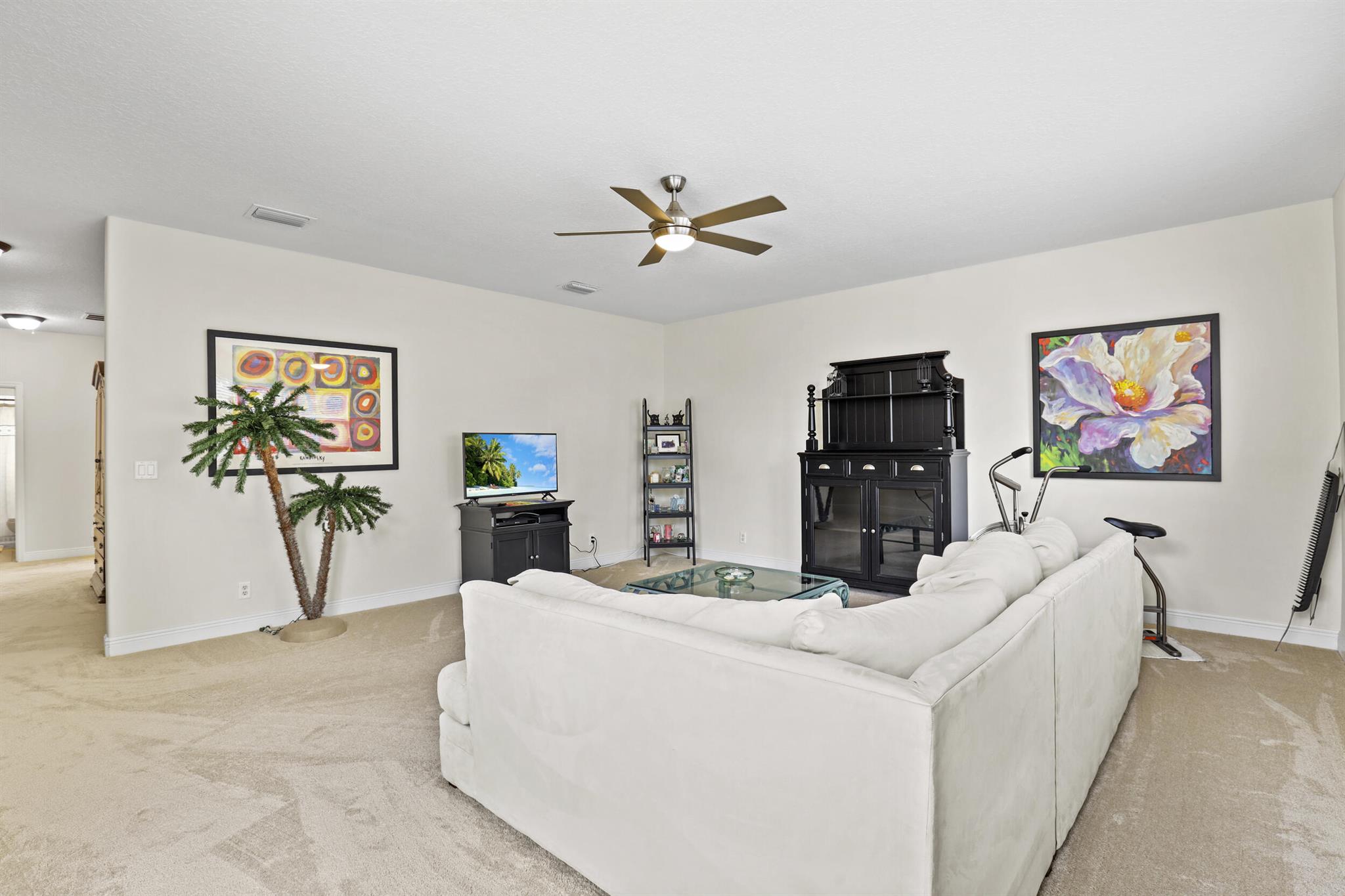 Perfect for multi-generational living, this spacious estate home is built w/ CBS construction, impact windows, doors & sited on a premier fully fenced lakefront lot. The gracious living area has volume ceilings and an outstanding floor plan. The primary suite plus additional bedroom are conveniently located on the main level. Upstairs, you'll find the remaining bedrooms, a loft, and a distinctive ''West Wing'' offering two bedrooms plus a grand bonus/flex space (perfect for a movie theater, golf simulator, club room, or any dream setup.) Other highlights include renovated primary bath, upstairs balcony, an additional staircase, extended driveway, and a striking front entry door. Exceptional value in this well-built home, ideally located within a gated community just minutes from I95