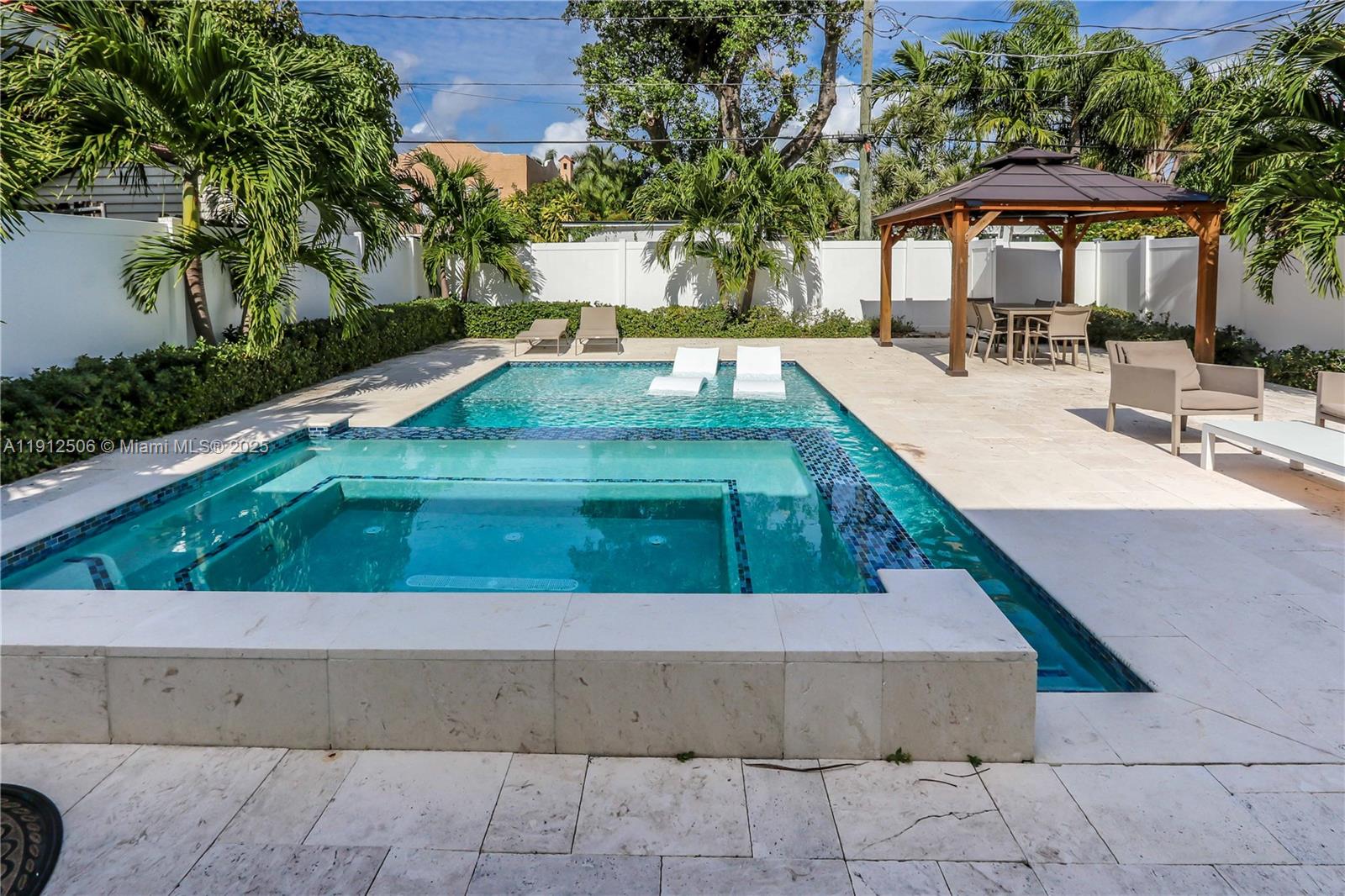Elegant 3 bedrooms / 2 bathrooms pool home with brand new hurricane proof/impact windows and doors! Magnificent location! Less than 5 min. to the Beach and 2 min. to Downtown Hollywood. Enjoy your private, fenced, resort-inspired backyard with a heated pool & jacuzzi, gazebo, and outdoor living spaces - perfect for entertaining. The nearby Atlantic Ocean, parks, and lakes, explore the vibrant downtown area for dining, shopping, and entertainment. The pool has lights and a Pantair pool system with a remote controlled system for pool heater, hot tub, pump, lights and other pool equipment .. Also smart thermostat, Alexa, smart doorbell with camera, smart lights in the living room, and motion lights outside. Close to Fort Lauderdale-Hollywood Int'l Airport. Close to Houses of Worship.