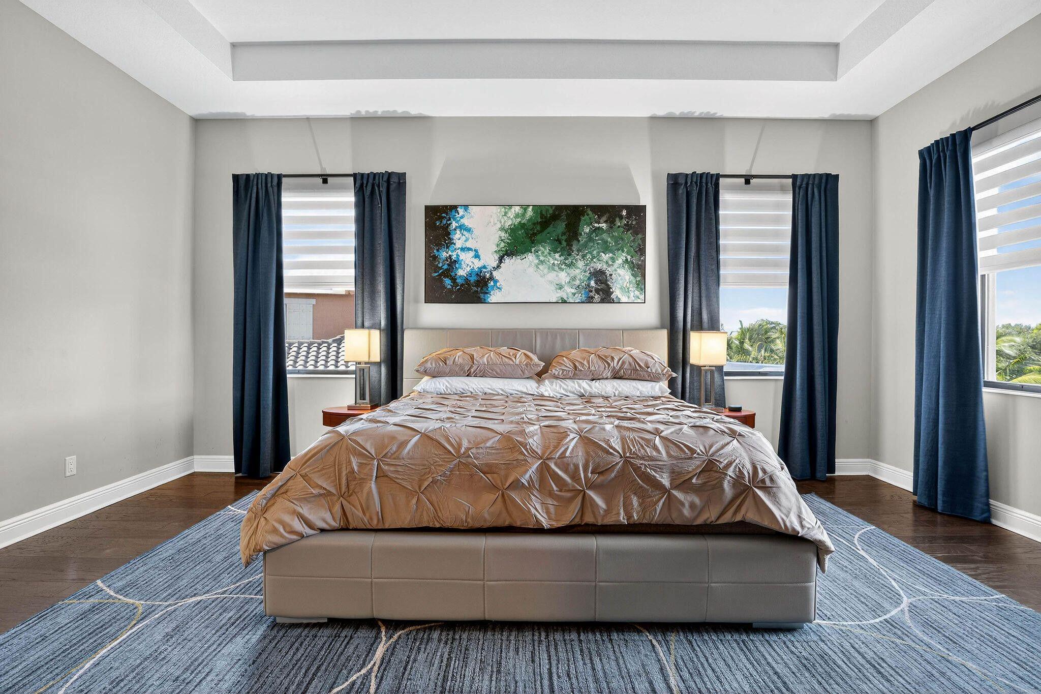 Step into your private sanctuary -- a stunning 4,716 sq ft modern retreat in Heron Bay featuring 5 bedrooms, 6 baths, and elegant contemporary design throughout. Set on a 10,440 sq ft lake-view lot, this home embodies the essence of Florida living with its bright open floorplan, high-end finishes, and seamless indoor-outdoor flow. Relax or entertain by the custom screened-in pool and spa, perfect for sunset gatherings. Enjoy resort-style amenities including gated security, pools, fitness center, tennis, and clubhouse -- all within an A-rated school district. A beautifully designed home in one of Parkland's most sought-after communities.