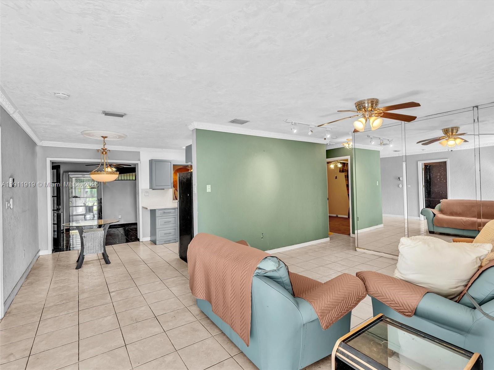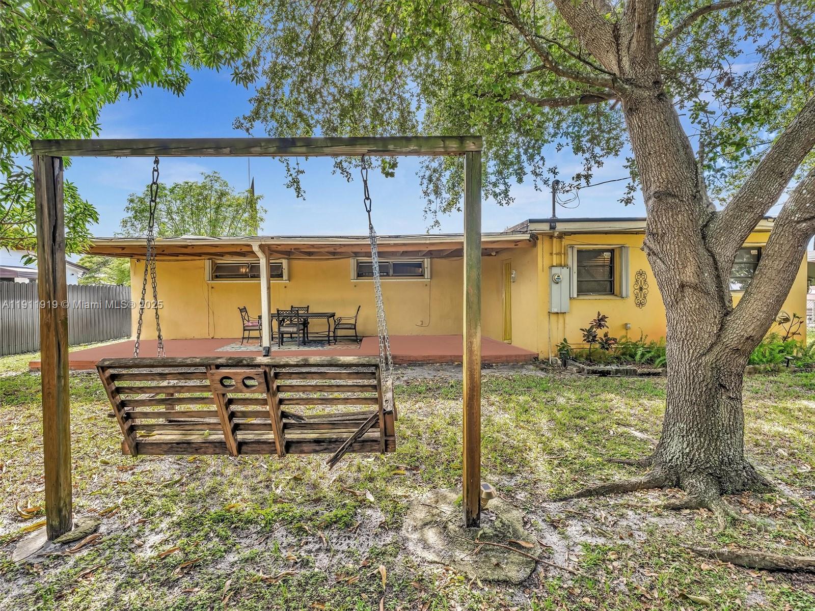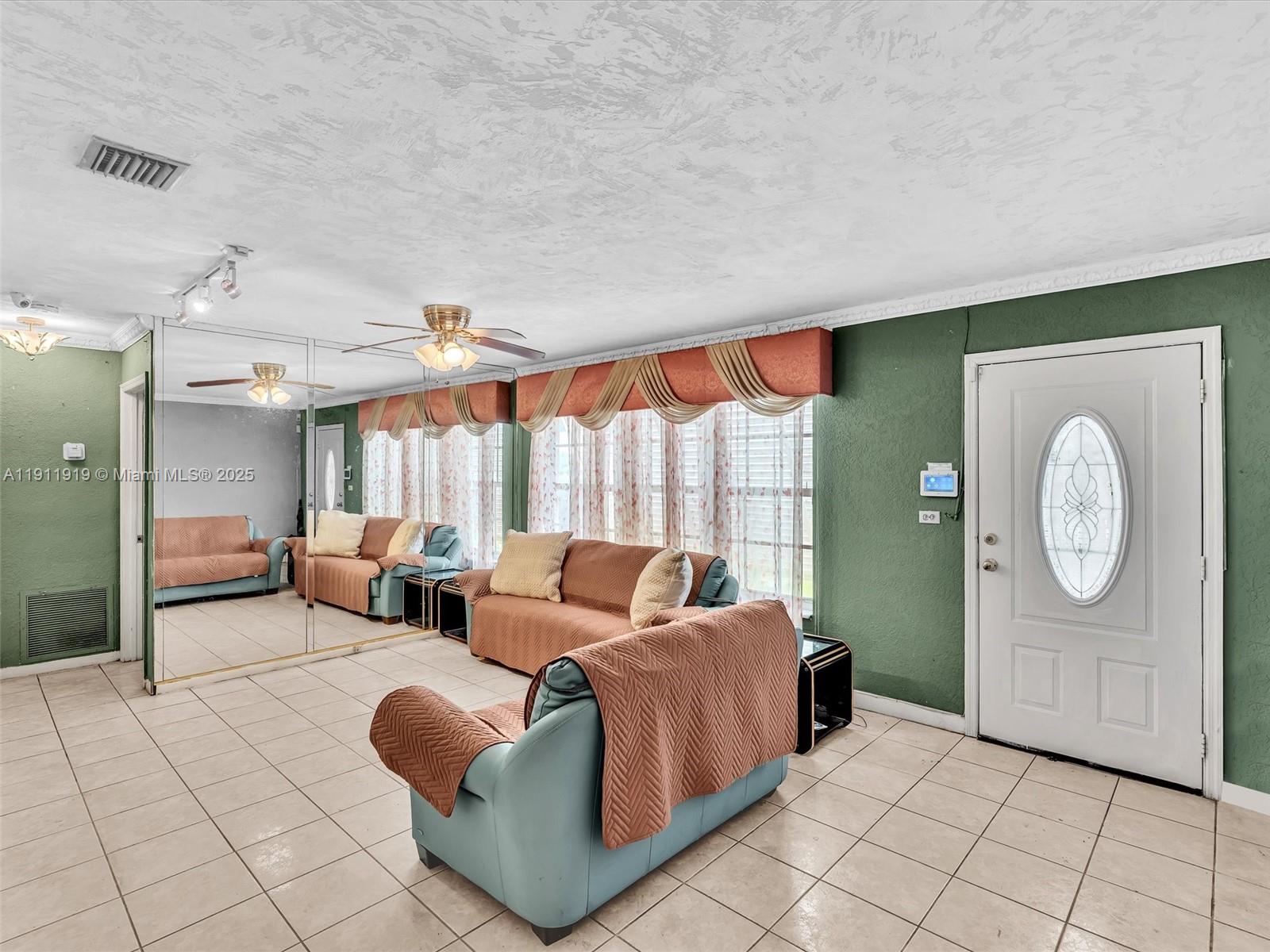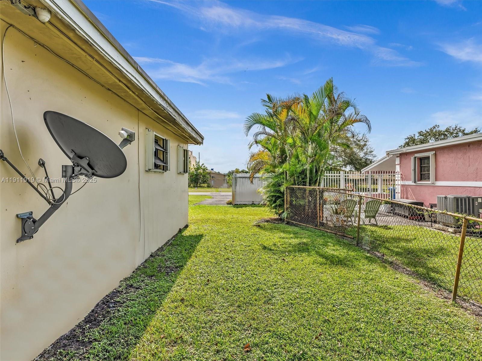 3bedroom Miami Gardens home with additional 4th room with closet that can be used as a 4th bedroom, office, or business. Conveniently located near Top Golf, major highways, hospitals, schools, shopping, and just minutes from the Hard Rock Stadium in this up and coming community. The master bedroom was upgraded to a master suite, HUGE den, very rare in this market. Enjoy outdoor living with a covered back patio, a storage shed, and a large fenced yard with a side gate—perfect for parking a large vehicle or truck behind the gate. House has mango & oak Tree in backyard, sprinkler system that runs on well water so BIG SAVINGS ON WATER BILL! Roof replaced 2018, kitchen done 2019, range replaced 2023, microwave replaced 2019, gas vent repaired 2018, patio installed 2020, A/C replaced 2014.