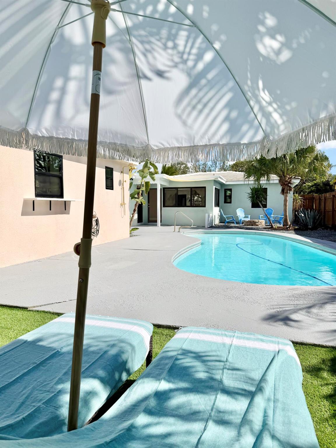 Welcome to 1121 N Ocean Breeze in the prestigious neighborhood of Parrot Cove- A truly one-of-a-kind property. Beautiful midcentury classic home with a guest suite and in-ground pool. The main house is a 2 bed /1 bath along with an equally stunning 1 Bed/1 Bath suite. Both are CBS construction with impact windows & doors. Professionally designed to preserve its vintage Florida charm with a modernized twist. Masterful kitchen complete w/ a porcelain farm-sink, quartz countertops, & SS appliances. Eat-in kitchen large enough to seat 3-4! Luxury vinyl flooring & 5inch baseboards throughout. Built-in sound system in & outside! Sun-soaked pool area suitable for entertainers & sun bathers. Lots of deck space and an outdoor shower w/ hot & cold! Large front lawn/courtyard area is rarely found.