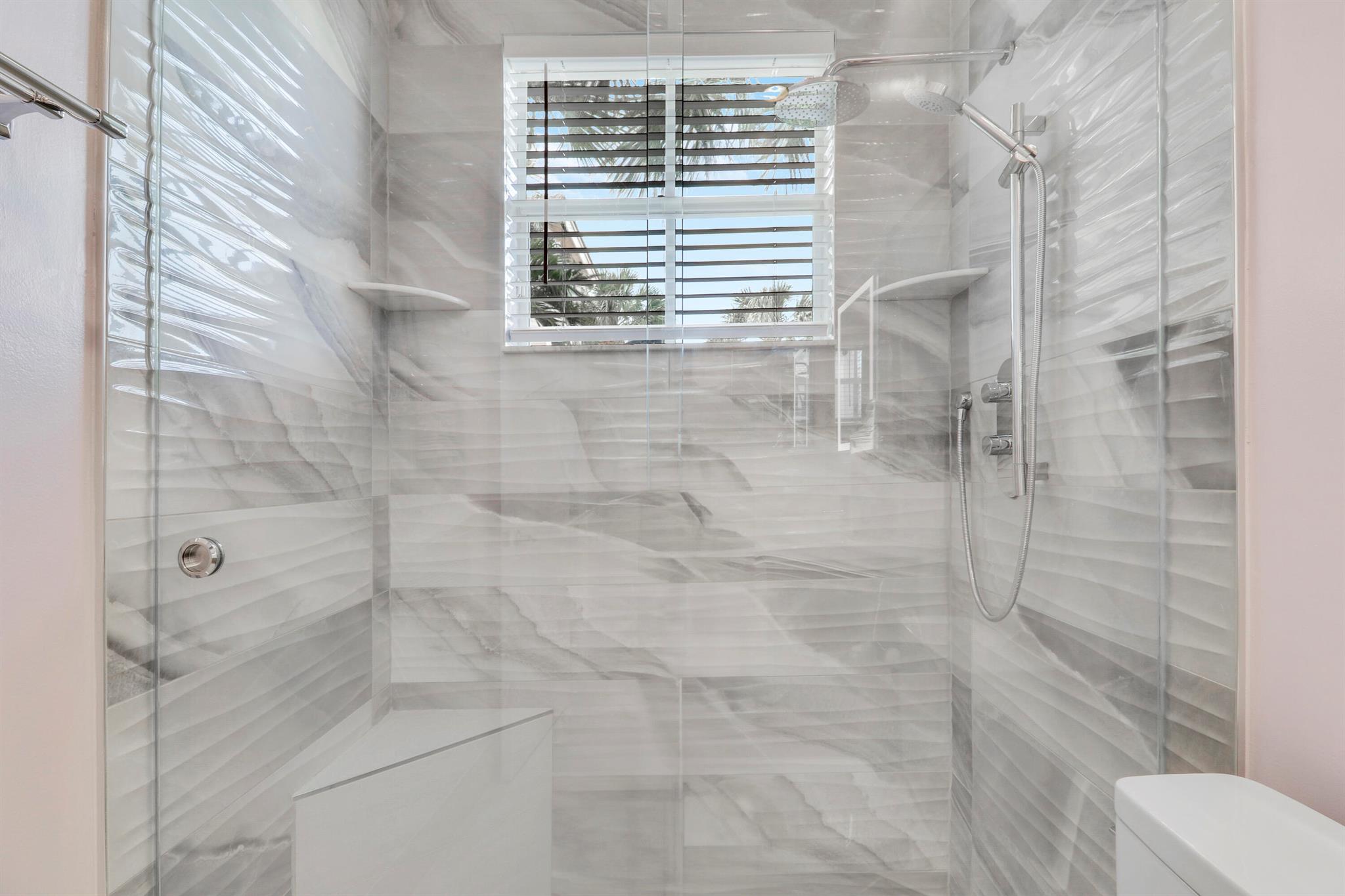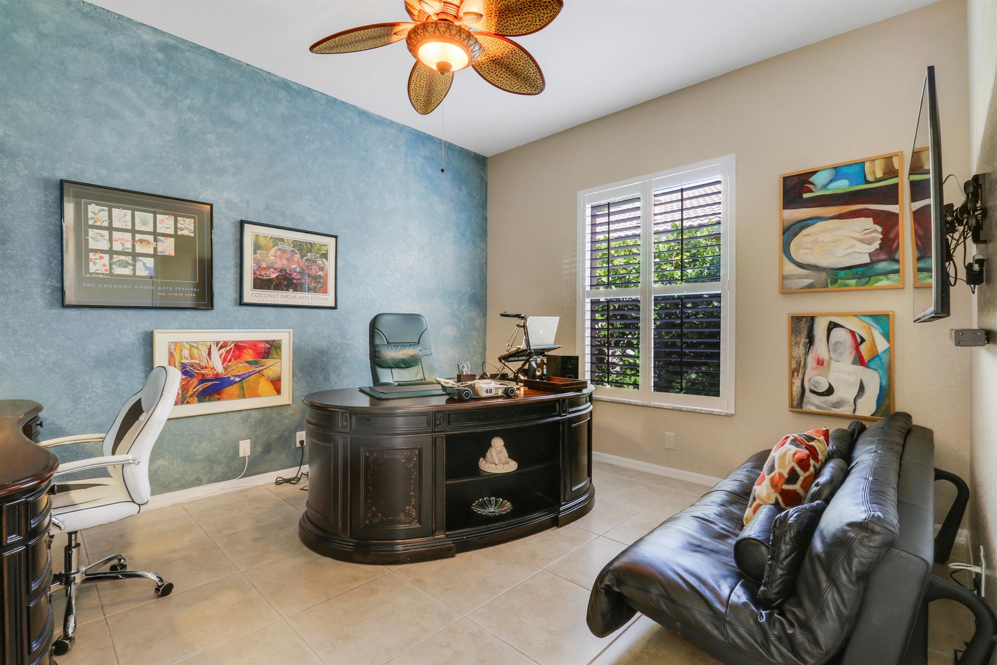 Welcome to this 4-bedroom, 2.5-bath home located in the desirable gated resort-style community of Mirabella. This extended El Prado model offers a spacious open layout with volume ceilings and a split floor plan with tile throughout; 4th bedroom currently set up as den. Perfect for both everyday living and entertaining the home features a large gathering room, open dining and kitchen with updated appliances and access to a private backyard oasis, complete with both covered and open patio areas and a peaceful green space. Additional upgrades include remodeled bathrooms with frameless glass showers, accordion shutters for storm protection, a tankless water heater, modern coach lights, and an extended-width driveway. Mirabella offers resort-style amenities including a gorgeous pool and
