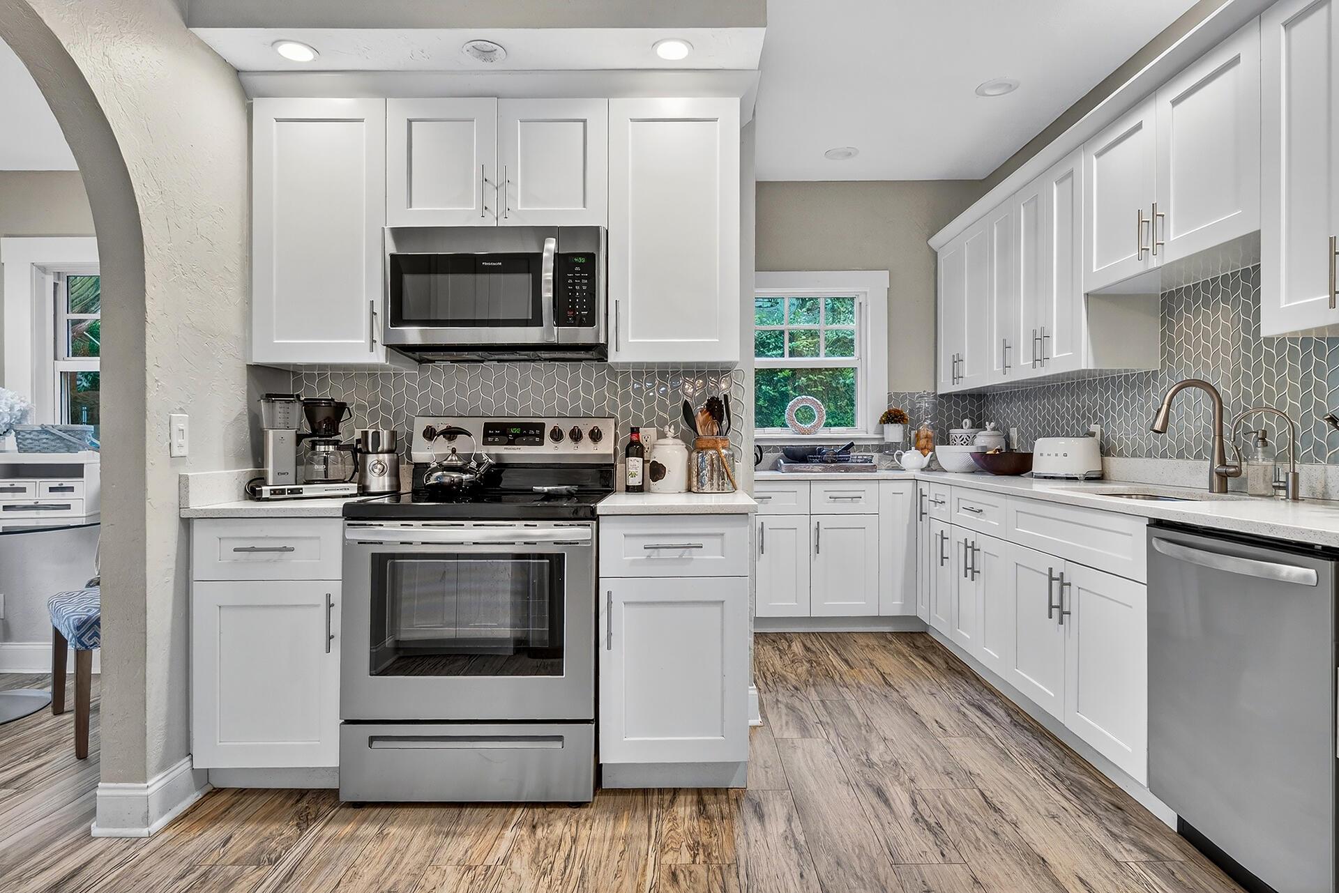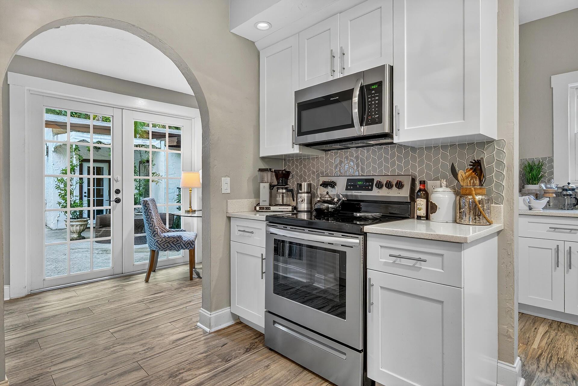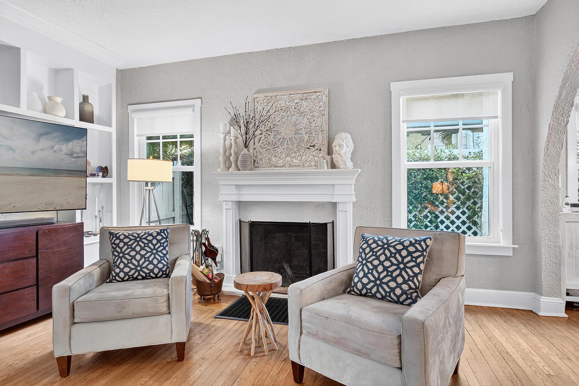 Welcome to 704 Claremore Drive in the heart of Flamingo Park. Built in 1925, this tranquil Spanish residence captures the grace of West Palm Beach's historic era while offering the comfort of modern living. 3 BD/2.5 BA Main House (Note: all 3 bedrooms are upstairs), a powder room/cabana bath downstairs, 2042 tsf/1834 under air, covered parking, a sunroom, a generous living room w/ original hardwood floors, high ceilings, wood-burning fireplace, charming dining room, updated kitchen, & cozy breakfast nook. Private backyard: mosaic-tiled, newly resurfaced, salt swimming pool & serene patio. 1 BD/1 BA Cottage (ground floor), 568 tsf, full kitchen. With impact windows, updates throughout & brick-paver driveway, this historic home offers a blend of period character & modern comfort.