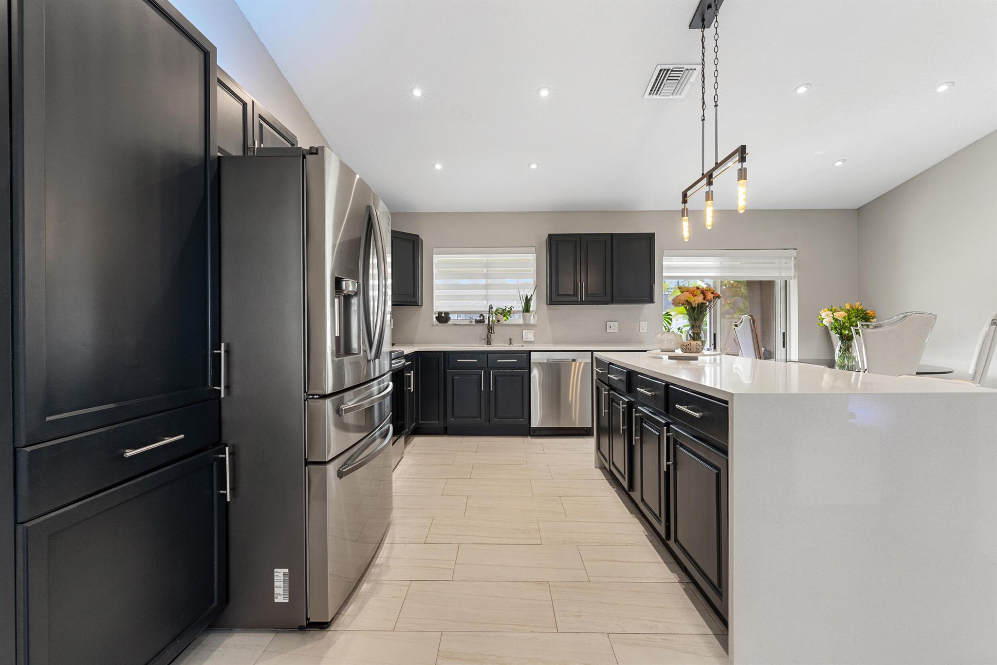 Fall in love with this darling 3-bedroom, 2-bath, 1-car garage home located in the heart of the highly desirable Southbend community -- where peaceful living meets modern style. From the moment you walk in, you'll feel the warmth and comfort this home offers. Every detail has been thoughtfully updated -- from the new flooring, baseboards to the modern kitchen featuring Corian countertops, stainless steel appliances, a spacious island, and sleek new cabinets that make cooking and gathering a joy. The open layout flows effortlessly into the living and dining areas, creating a bright, airy space perfect for relaxing or entertaining. The Master Bathroom is been tastefully updated, and the home shines with fresh paint, designer lighting, and custom blinds that add a clean, contemporary touch...