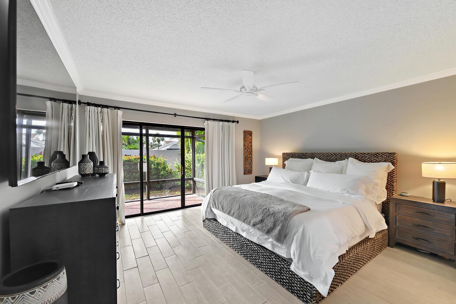 Welcome to this immaculate 2-bedrooms 2-baths home in a prestigious Country Club community. Nestled just a mile from the Ocean, this desirable location offers effortless access to sun-kissed beaches, high-end shopping, and gourmet dining. As a resident, you'll enjoy the freedom to opt-in to the country club, unlocking exclusive amenities and social opportunities. As you approach the home, you're immediately greeted by a perfectly manicured, East facing patio that sets the tone for a warm and inviting atmosphere within. The heart of this home is an open flow that boasts stunning wood Shiplap Vaulted ceiling and a skylight ensuring plenty of natural light throughout the day. Further complimenting this coastal-chic home is a chef's kitchen with white shaker cabinetry, quartz countertops, and