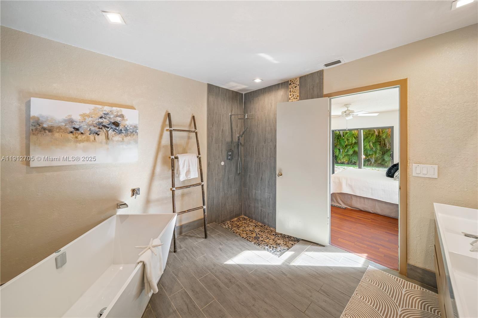 Stunning pool home located on an oversize cul-de-sac lot! Completely renovated Italian modern kitchen with gorgeous custom wood cabinets, stainless appliances, & breakfast bar open to the huge family room. Primary bedroom with direct access to pool & patio features a massive bathroom with a double vanity, free-standing elegant tub, and walk-in shower. Renovated guest bathroom. Whole-house hurricane protection with high impact windows and sliding doors. The back yard is a dream come true with its free form pool and surrounding patio, expansive designed paver play area with fire pit, covered patio, and lush privacy landscaping. Side yard offers space to park your boat. Excellent schools. Easy access to highways, shopping, theater, restaurants, hospitals. Low $30 monthly maintenance.
