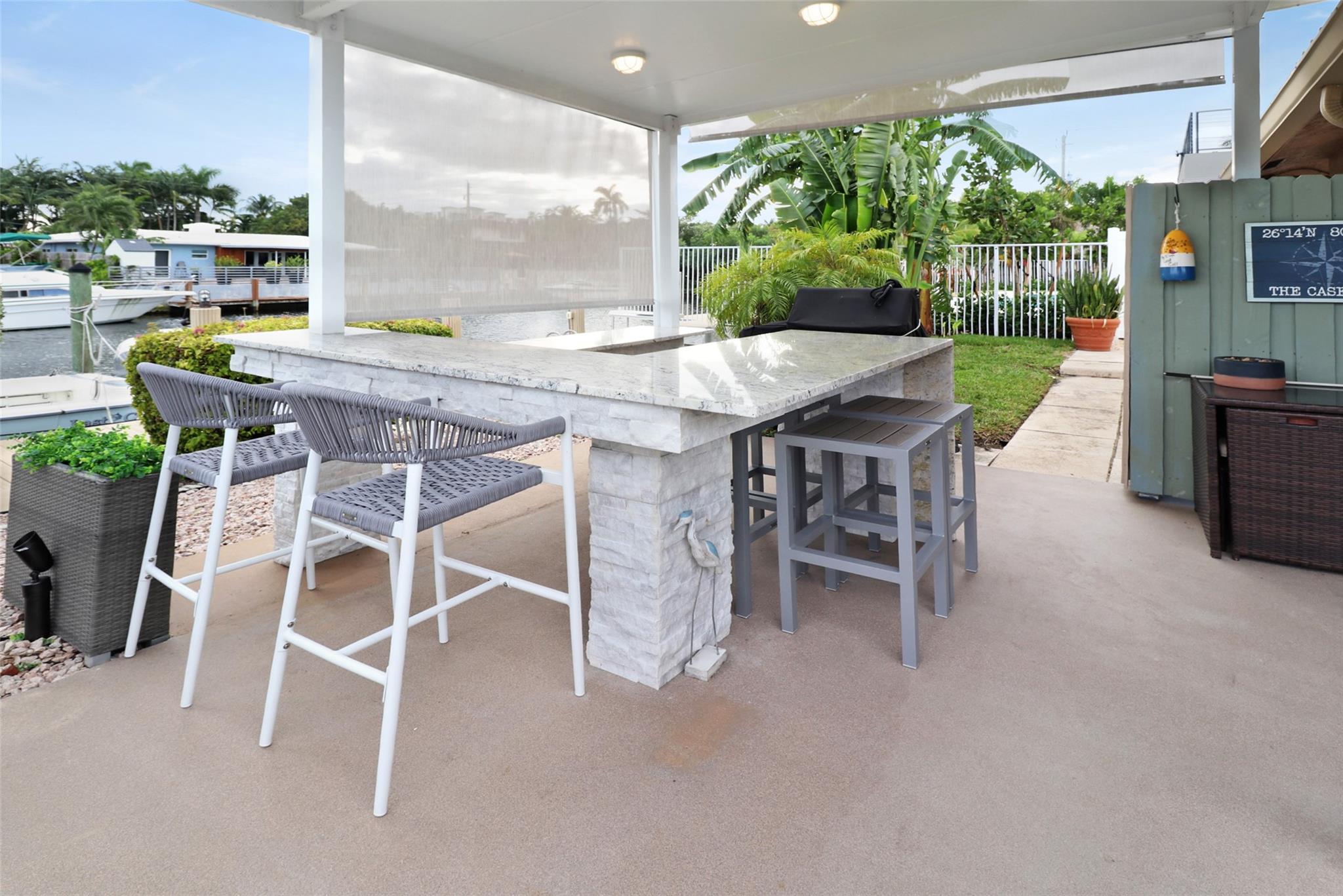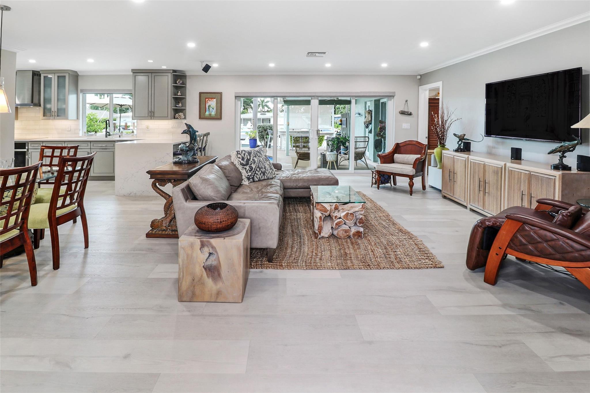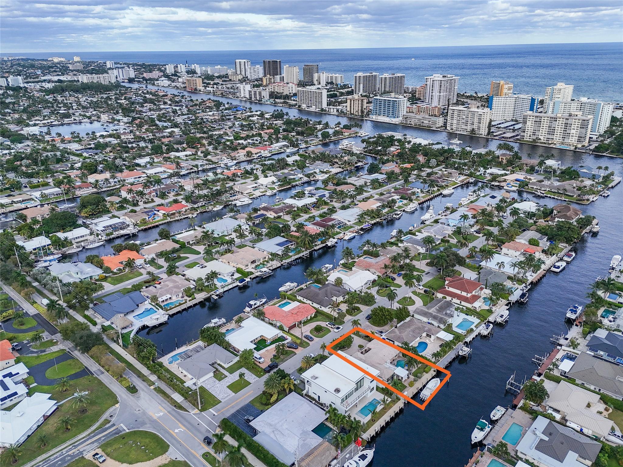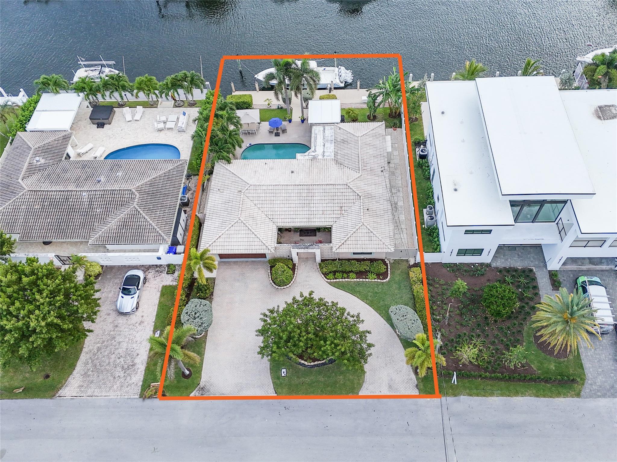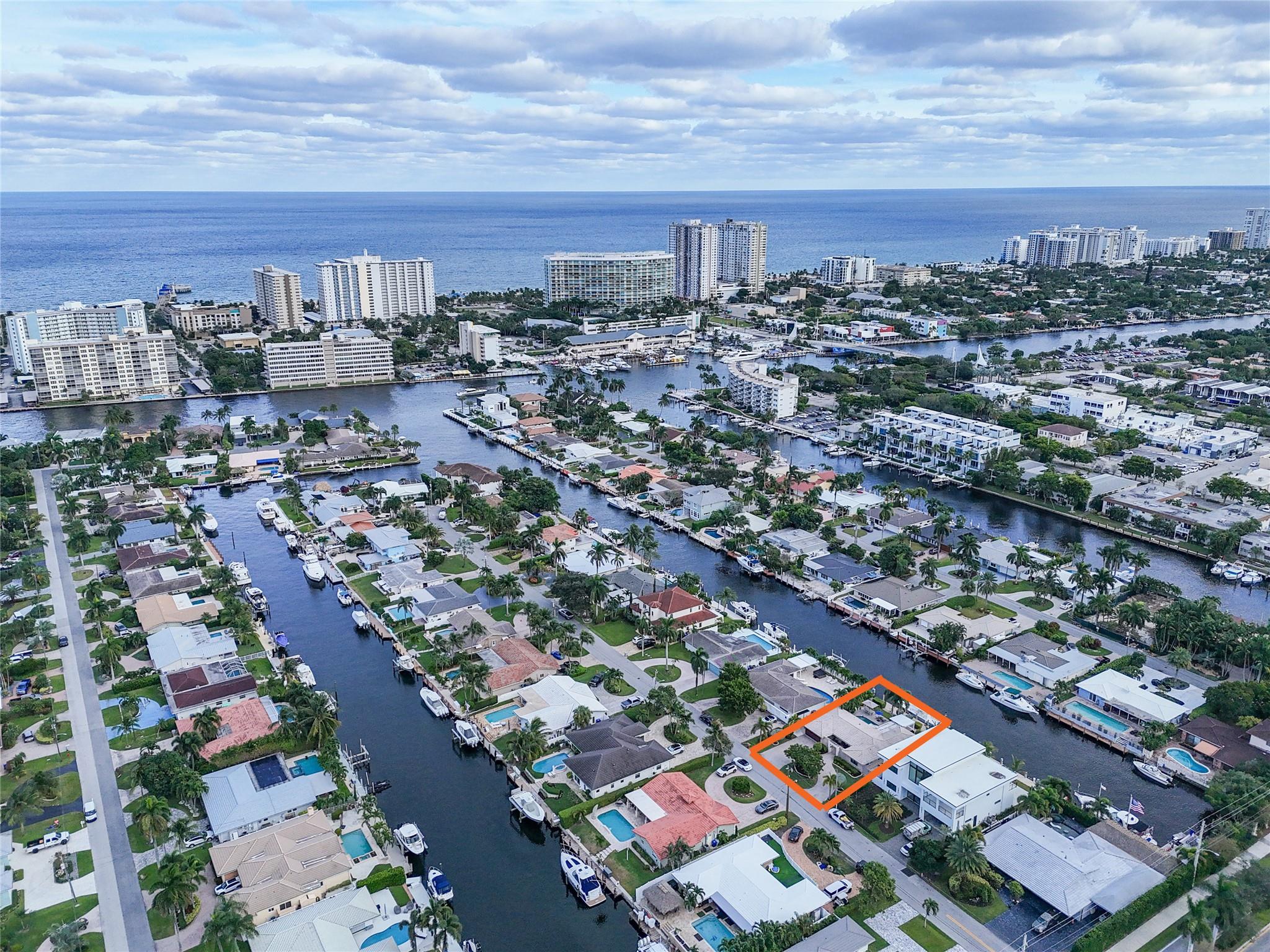 Pristine 3 bedroom 2 bath waterfront pool home in Harbor Village with NO fixed bridges & preferred Southern exposure. Open floor plan with expanded Kitchen and breakfast bar + chefs pantry. New flooring, fixtures, fans & LED recessed lighting throughout. Gorgeous primary & secondary baths. Backyard oasis w/ covered patio plus recently completed pergola & outdoor bar. 75’ of water frontage w/ a 65’ dock on 100' wide Poinsettia Canal. Dock offers 50 amp service + 110. Straight shot to the Intracoastal Waterway and minutes to Hillsboro inlet. Walking distance to Atlantic Blvd. & the beach. New PVC plumbing to the street. Updated electrical inside & out. Newer A/C and W/H. Generator hookup. Outdoor shower. Circular paver driveway. Interior Laundry w/ built-in cabinets +++. This is the one.