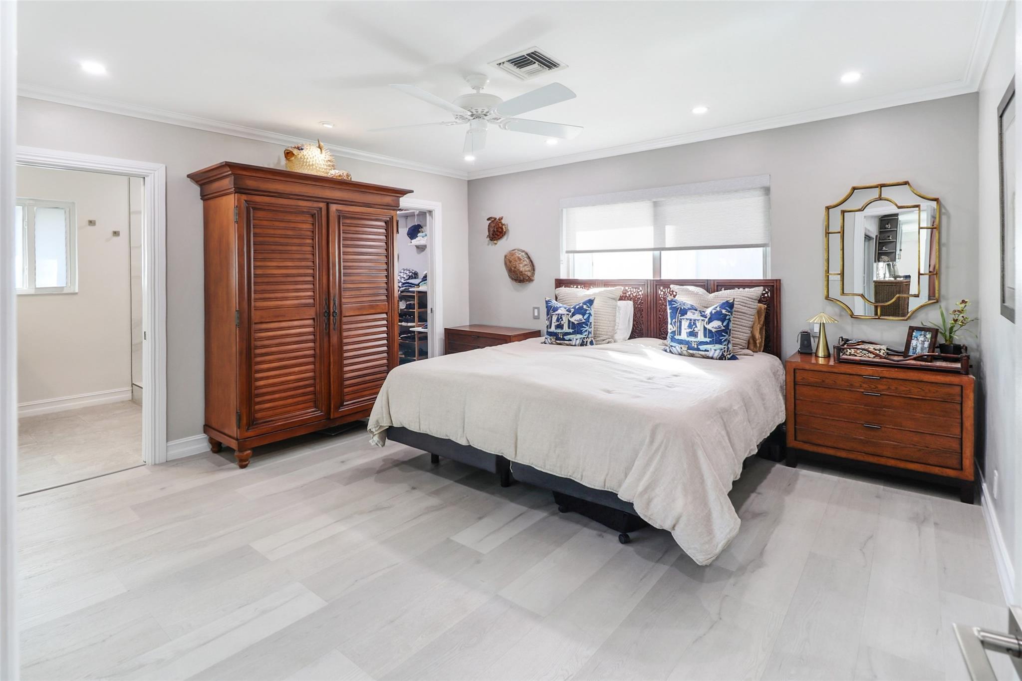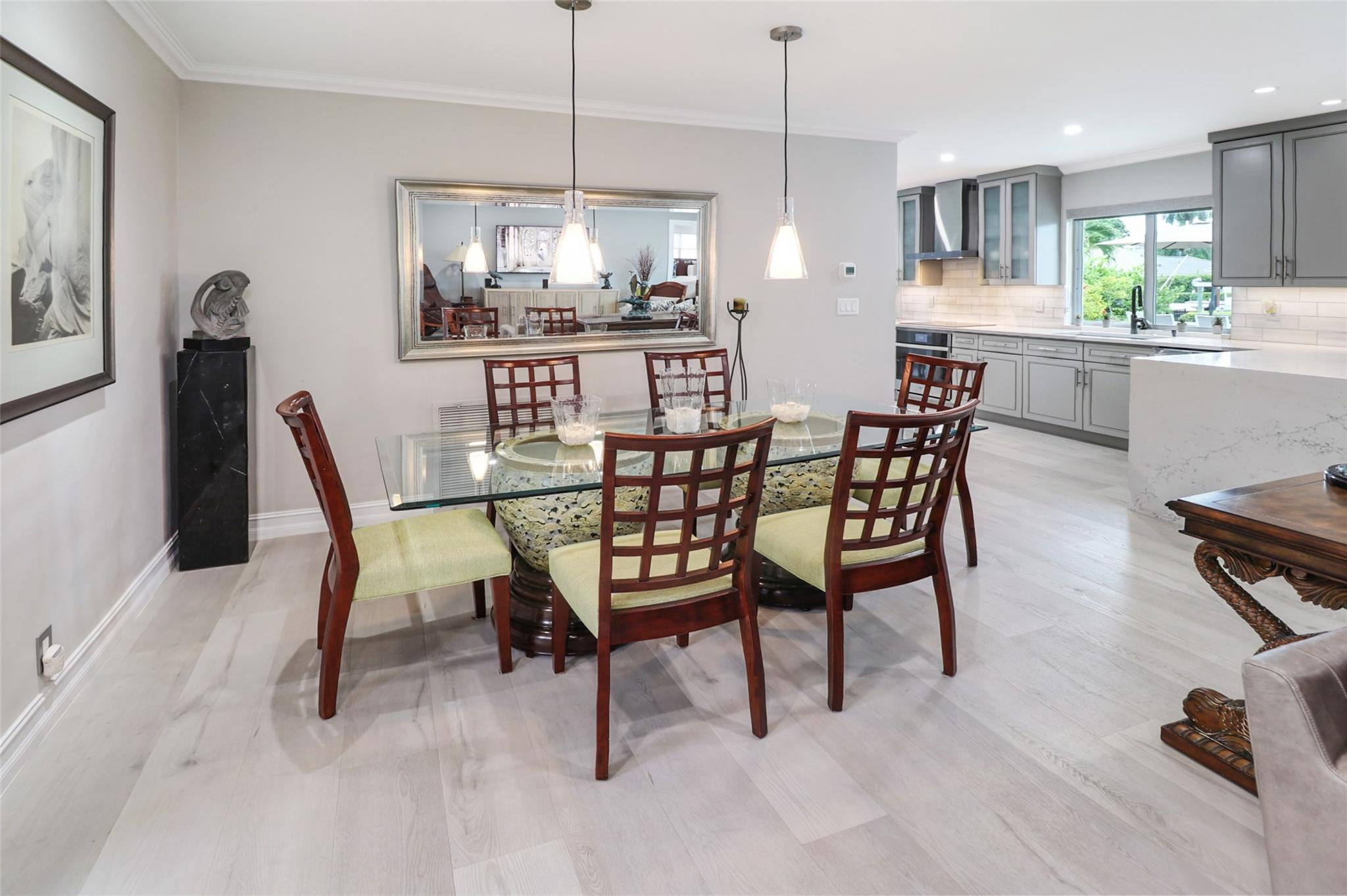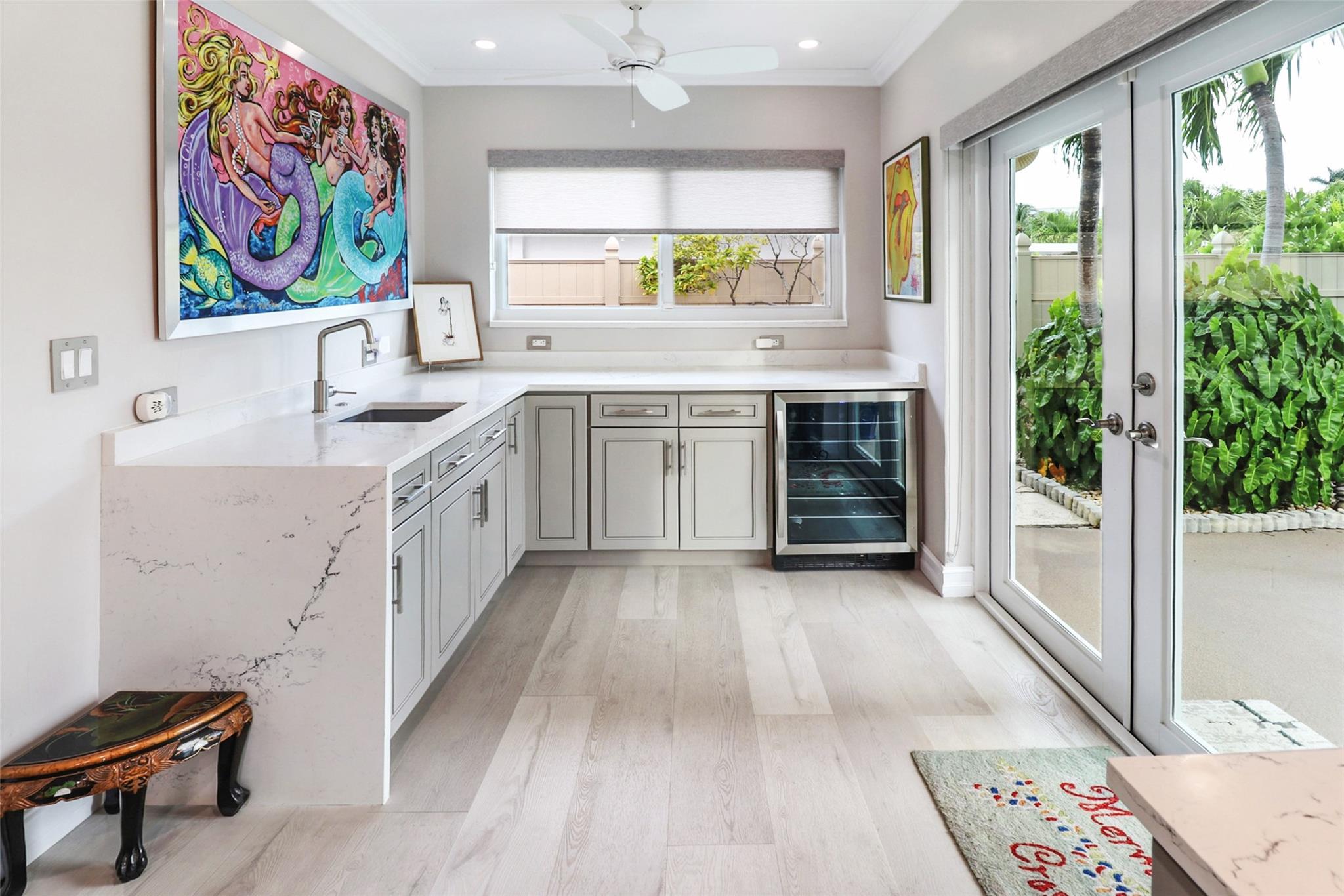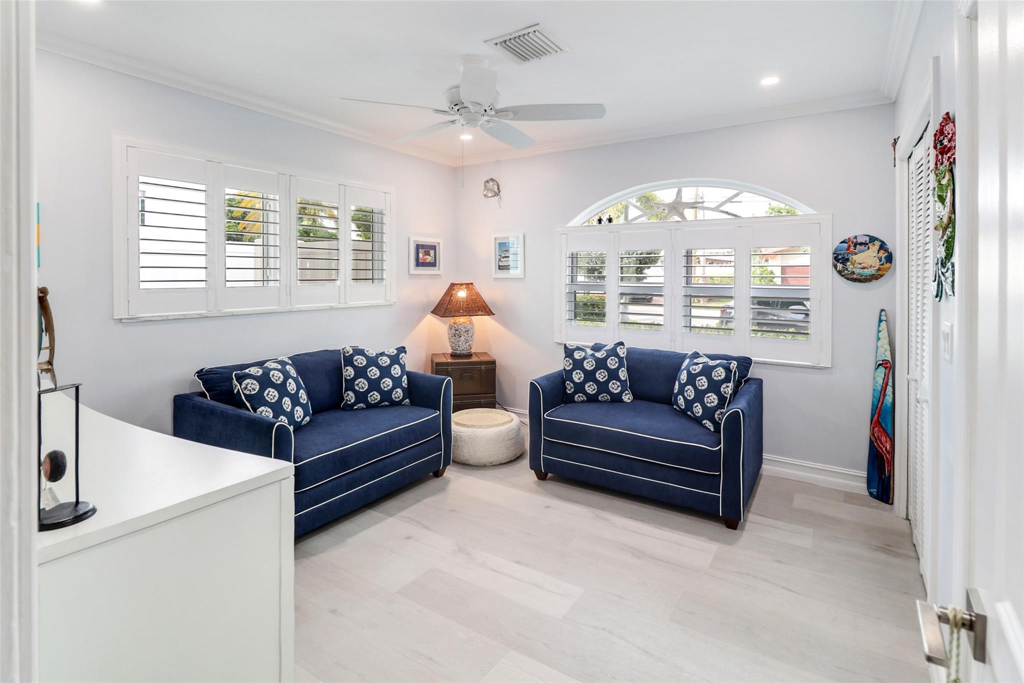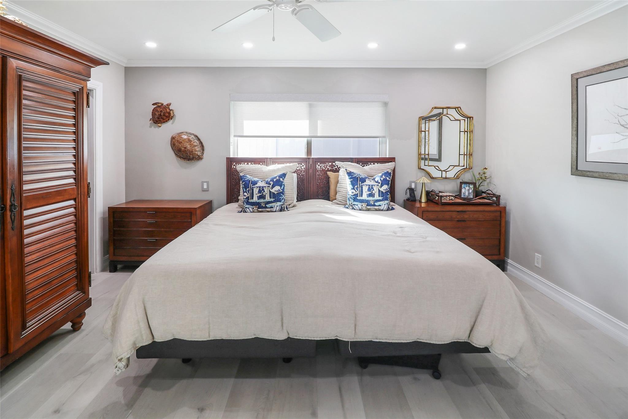 Pristine 3 bedroom 2 bath waterfront pool home in Harbor Village with NO fixed bridges & preferred Southern exposure. Open floor plan with expanded Kitchen and breakfast bar + chefs pantry. New flooring, fixtures, fans & LED recessed lighting throughout. Gorgeous primary & secondary baths. Backyard oasis w/ covered patio plus recently completed pergola & outdoor bar. 75’ of water frontage w/ a 65’ dock on 100' wide Poinsettia Canal. Dock offers 50 amp service + 110. Straight shot to the Intracoastal Waterway and minutes to Hillsboro inlet. Walking distance to Atlantic Blvd. & the beach. New PVC plumbing to the street. Updated electrical inside & out. Newer A/C and W/H. Generator hookup. Outdoor shower. Circular paver driveway. Interior Laundry w/ built-in cabinets +++. This is the one.