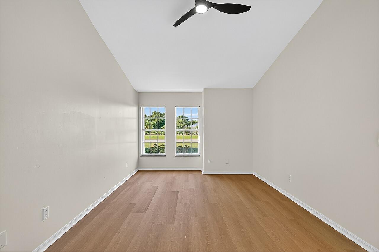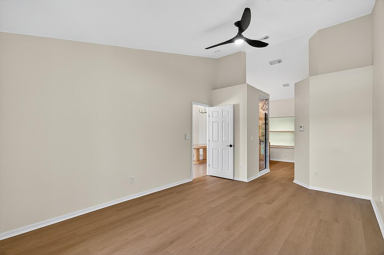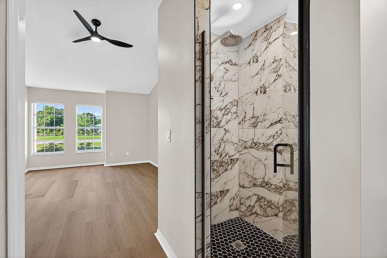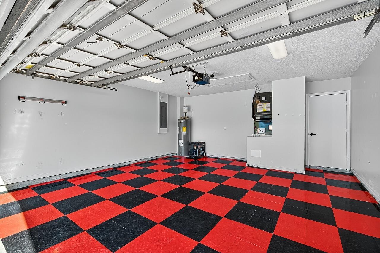 This renovated three-bedroom, two-bath residence features a new metal roof with a 50-year warranty, lowering homeowner insurance rates. The AC system was installed in 2025 and is complemented by freshly cleaned air ducts. The water heater (2018) and the washer and dryer (2024) remain under warranty. The open-concept split floor plan includes a chef's kitchen equipped with a 12-foot granite island, new cabinetry, granite countertops, and premium appliances. All ceiling fans and interior finishes have been updated. The exterior comprises a lush, private tropical lot with mature 30-foot palm trees, a fruit-bearing mango tree, and a 10x10 storage shed. The garage offers updated flooring, modern lighting, upgraded door springs and sensors, as well as a finished attic for additional storage.