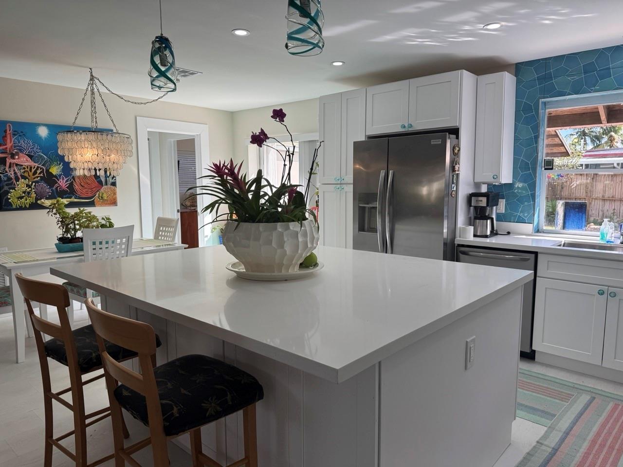 Beautifully updated 4BR/2BA pool home featuring a tropical waterfall, jacuzzi, and bar area. Bright new kitchen and baths, split-bedroom layout, spacious utility room, and large closets. Light vinyl plank flooring throughout. Tile roof with new flat roofs. Circular driveway fits 4+ cars, with boat and RV parking allowed. Large fenced lot on a quiet street—walk to schools, parks, and shopping. Boat launch 3 minutes away, close to I-95, 595, and the Turnpike, just 15 minutes to Downtown and Las Olas. Current 4-point and wind mitigation reports available. Priced to sell—owner may assist with closing costs!