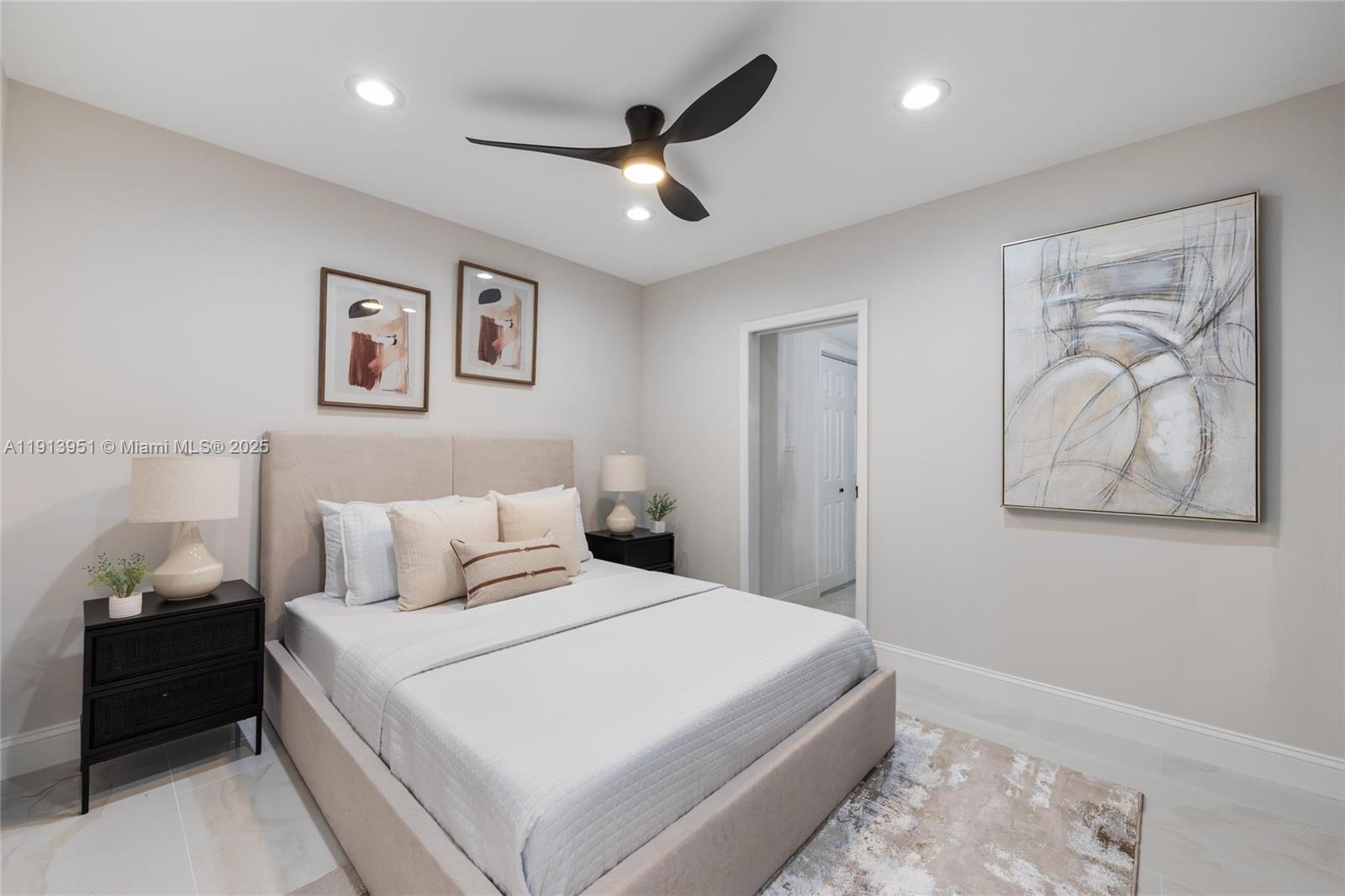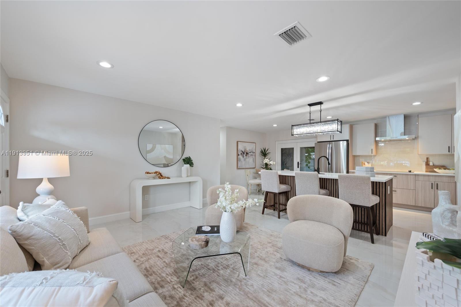 Exquisite 3BR/3BA (extra room that can be used as a bedroom) Miami Gardens home with multi-million dollar finishes! Chef’s kitchen w/ stainless steel appliances, double oven, two-tone cabinets & quartz counters. Primary suite boasts soaking tub, custom tiled shower & dual vanity. Upgrades include HVAC, roof, new floors, doors, recessed & exterior lighting, plus landscaping. Two porches, massive driveway, fenced private backyard, no HOA. Feels like brand new construction—unmatched quality & style. A true one-of-a-kind gem!