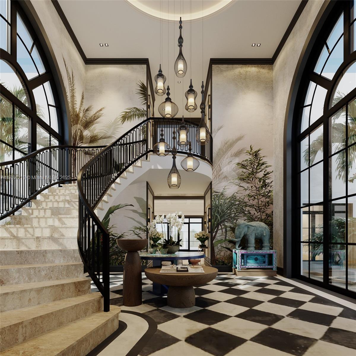 Step into over 11,000sf of architectural brilliance by award-winning Pacheco Architecture. A Cartagena-inspired new construction masterpiece designed to perfection. Not another spec home box. Curved archways, vibrant custom tiles, airy courtyards & oversized windows provide views & natural light in every room. Features include a double-height foyer, grand staircase, luxe primary suite w/ sunroom, smokeless fireplace & spa bath. Enjoy a movie theater, elevator, butler’s kitchen, wine cellar, fitness room, sauna, & massive terraces. A backyard oasis boasts a 70' pool, waterfall & jacuzzi, outdoor kitchen, & private guest suite cabana. Situated on nearly 1 acre on a North Pinecrest secluded street. Act now at a special preconstruction price & to customize final finishes. Est Delivery Q2 2025