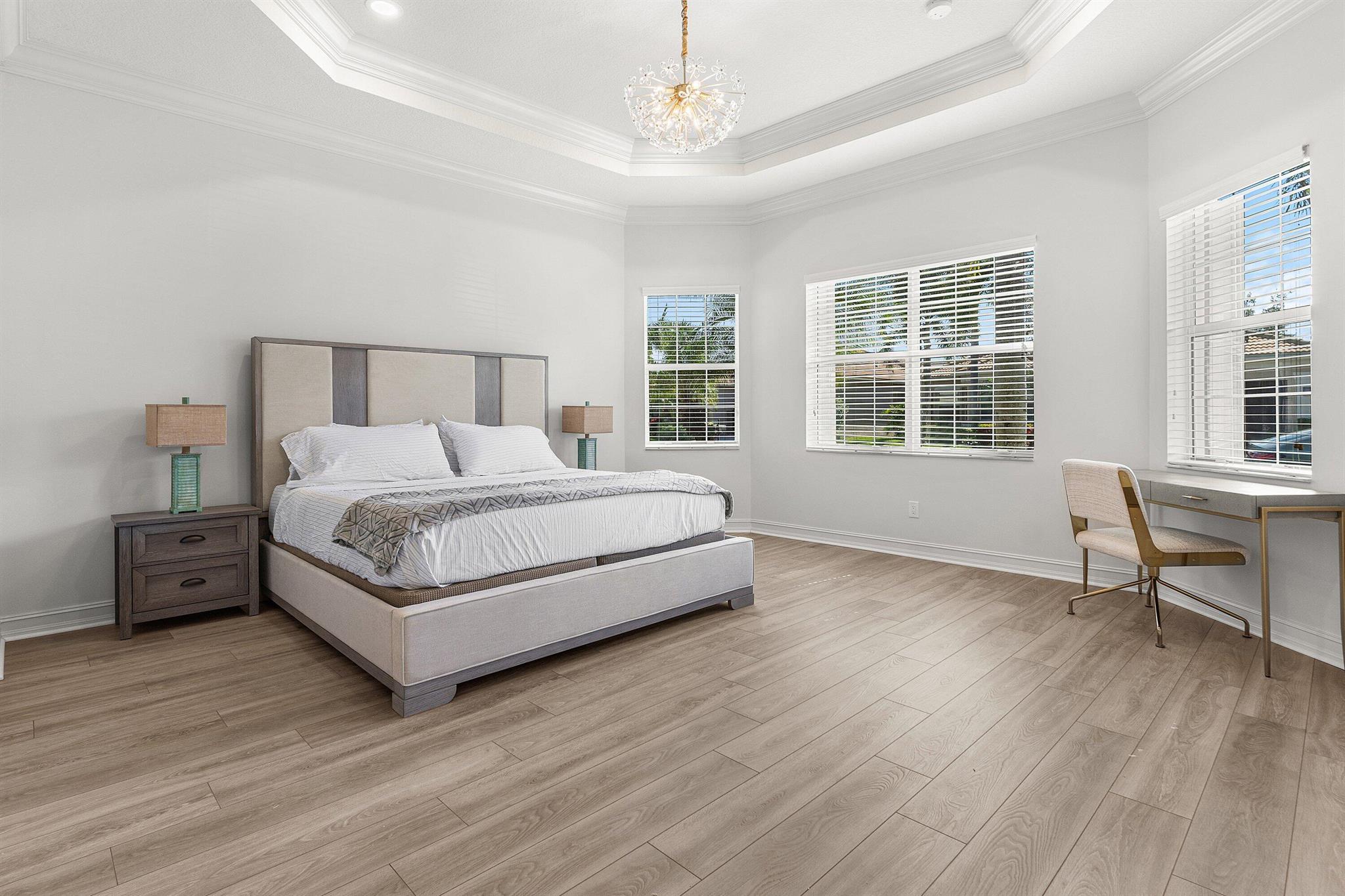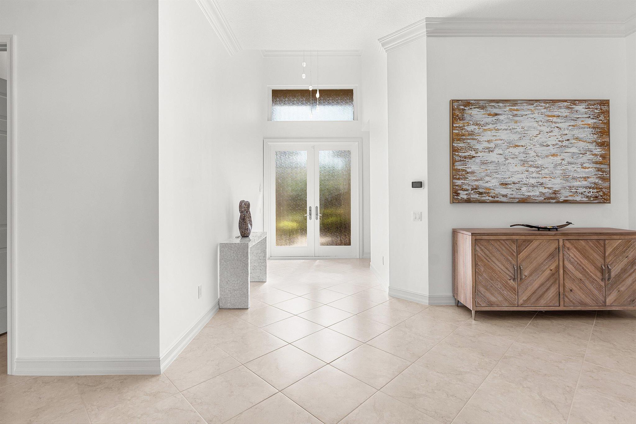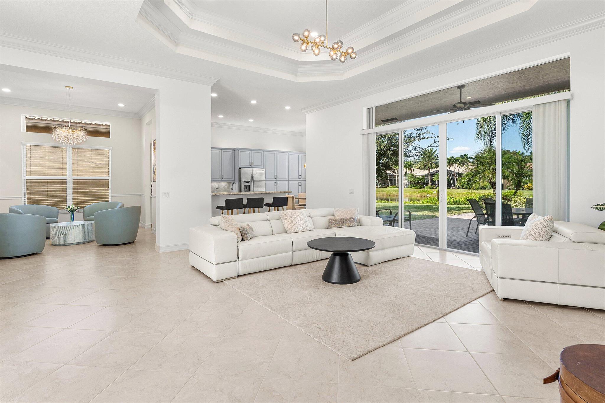 Stunning, light-filled Alexandra Grand model home featuring two expansive primary suites, an additional third bedroom, and three full baths--all complemented by a whole-house generator and a serene view. The home welcomes you with custom impact double front doors and transom window. The gourmet kitchen offers stainless steel appliances and light cabinetry. The interior has been freshly painted, and all three bedrooms now feature brand-new luxury vinyl flooring. Additional upgrades include crown molding, custom millwork, designer mirrors in the dining room, beautiful new fixtures, and outfitted primary closets, among more thoughtful enhancements. Located in the highly sought-after Valencia Reserve, a 55+ community, soon unveiling its exquisitely renovated clubhouse. Welcome Home!