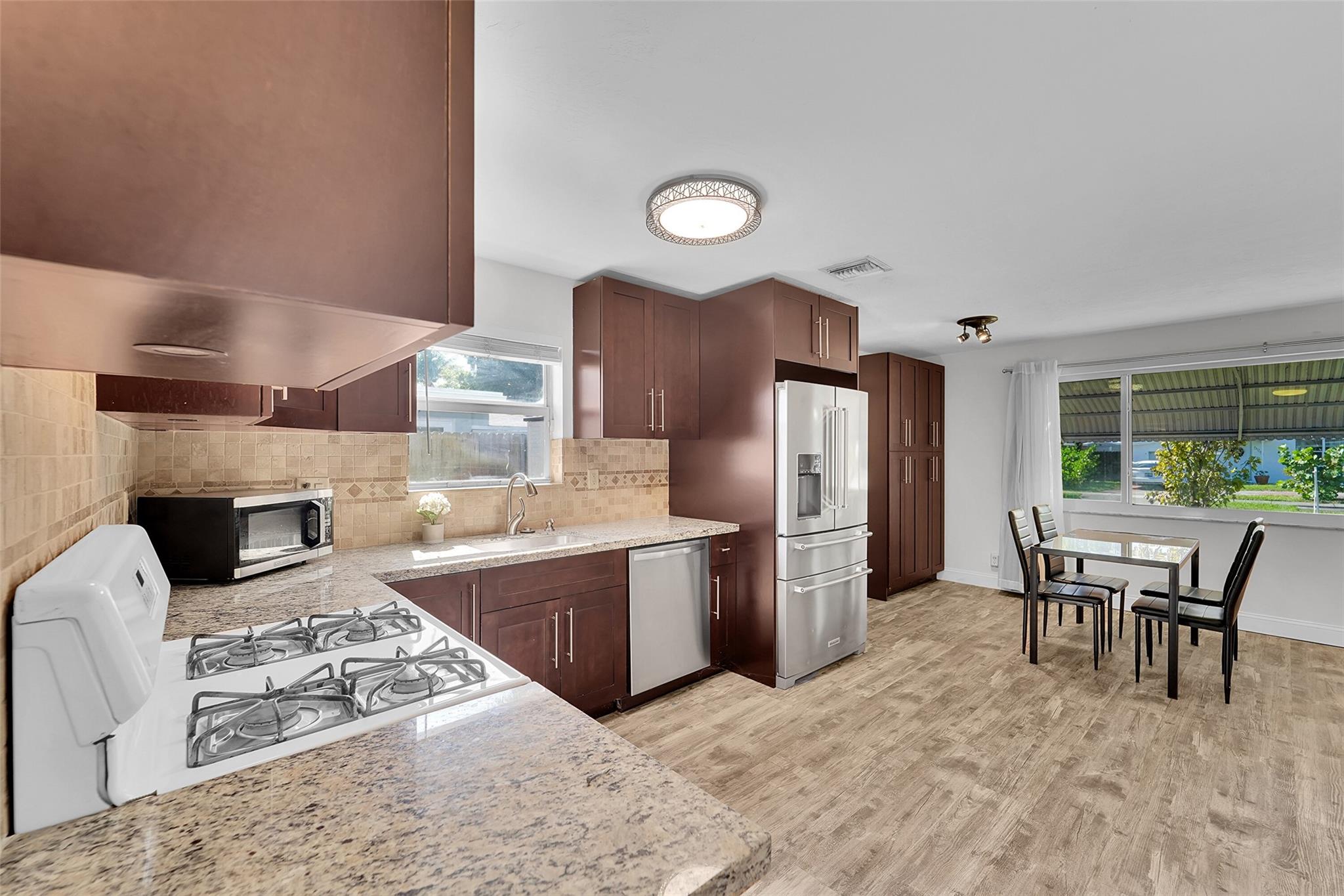 Centrally located near shopping, restaurants, and major highways. Features include a newer roof, sea saltwater pool, and impact windows and doors throughout. No homeowner's association.