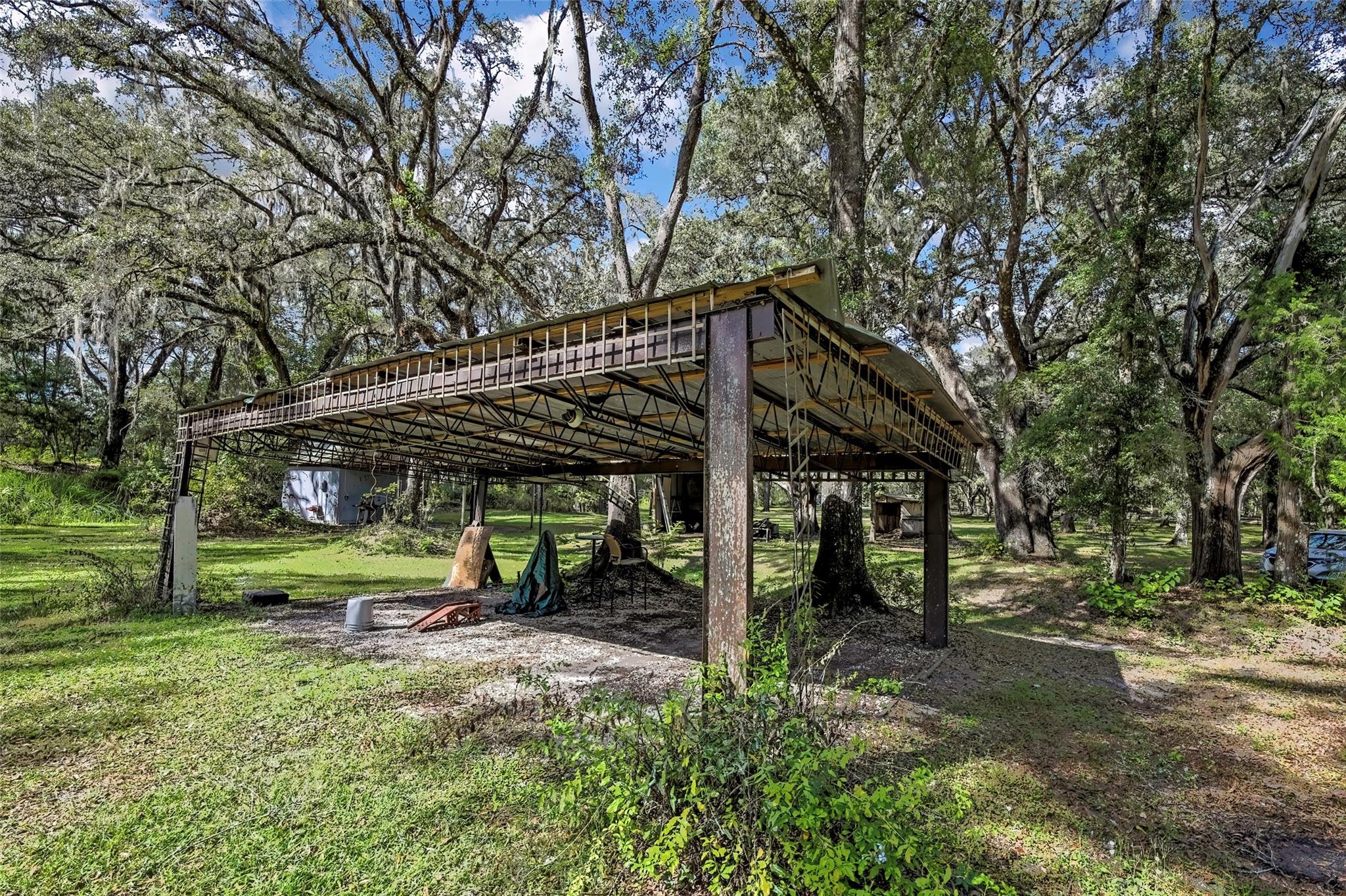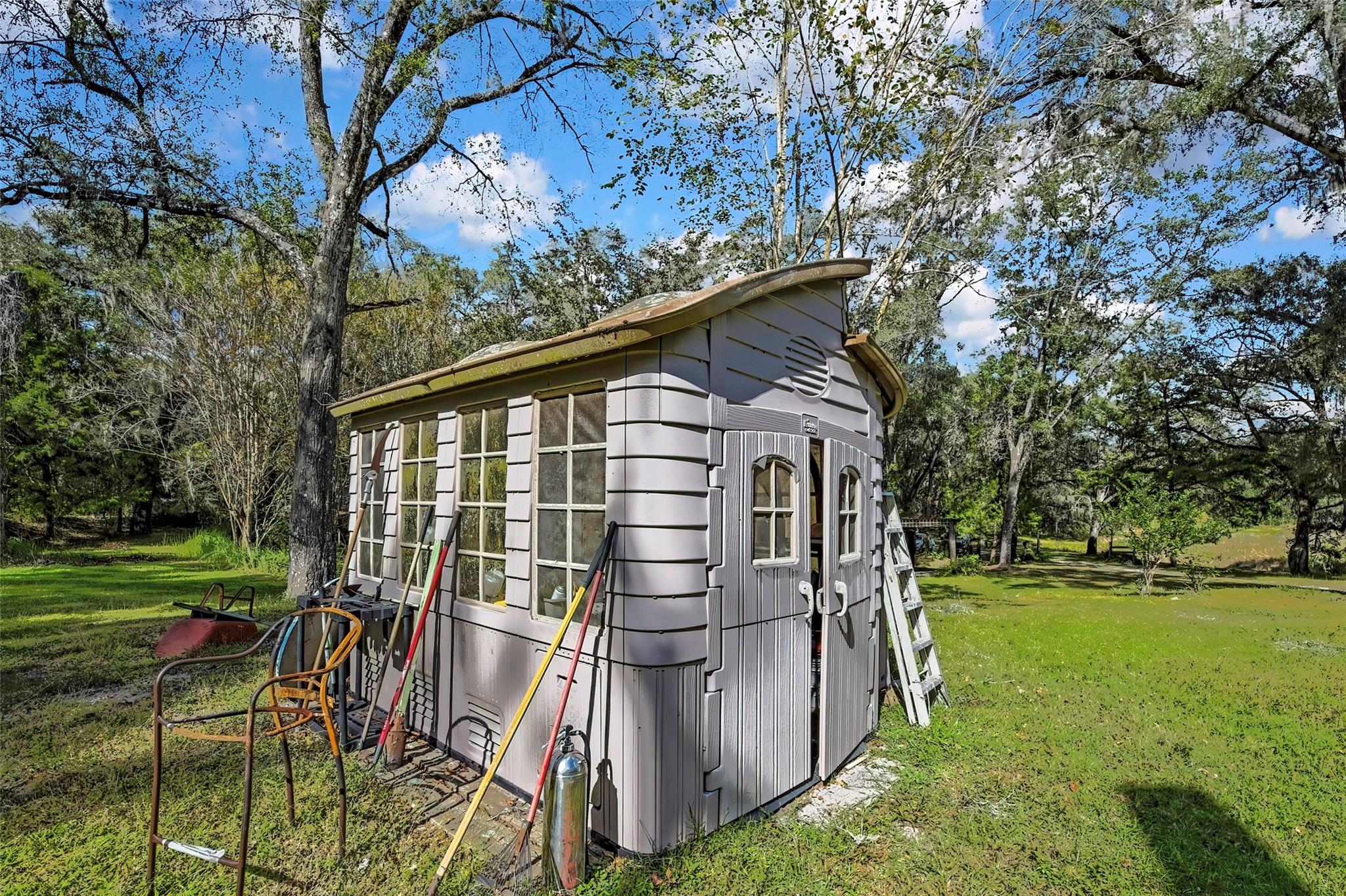 Welcome home to this charming three-bedroom, two-bathroom retreat nestled on 4.9 beautiful, tree-lined acres. This fully fenced property offers peace, privacy, and plenty of room to roam. Enjoy tranquil mornings by the pond or relaxing evenings on the screened-in patio, surrounded by the sounds of nature and the occasional deer passing through. Inside, you'll find a warm and inviting living room with a fireplace, a kitchen featuring stainless steel appliances, and plenty of space for comfortable living. The property has a two-car garage, a detached workshop, a storage shed, and a greenhouse. Perfect for hobbies, projects, or gardening enthusiasts. A short drive to Disney, Gainesville and Tampa. Experience country living at its finest, with all the comforts of home waiting just for you.